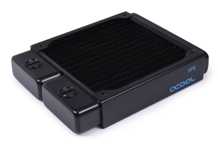 The NexXxos Full Copper HPE Radiator uses the same materials as previous NexXxos models, but takes it a step further technically. Due to the condensed internal structure, the number of water channels and copper fins could be increased. Thus, a larger volume of water is in direct contact with the cooling fins and the heat transfer is enormously improved. The higher number of fin rows and their shortening also makes much more efficient use of the cooling surface. Comparison tests* with the conventional NexXxos radiator have shown that a performance increase of 4.5K is possible when using the HPE radiator. At higher ambient temperatures and higher fan speeds, the performance gap with the normal NexXxoS radiators even increases progressively, reaching a possible performance increase of up to 6K.