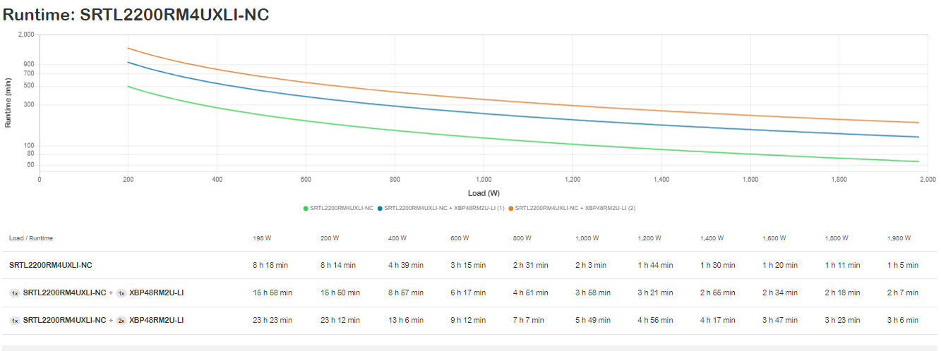 At 1980W/2200VA this Smart-UPS On-Line Lithium-Ion battery backup system provides high-density, double conversion on-line pure sine wave power, preinstalled Netwrok Management Card. In addition to cleaner, quieter power protection, this UPS is only around half size and weight of comparable UPS systems with similar runtime and has flexible rack and tower installation options. A new extended runtime battery pack provides longer runtime in a small 2U footprint while tripling the life expectancy of the UPS. SRTL 1-3kVA UPSs with this rong runtime battery pack is perfect for applications critical for runtime.