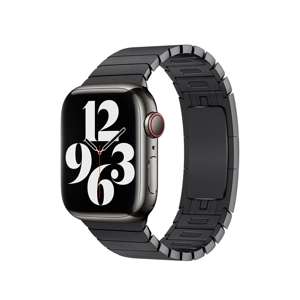 Crafted from the same 316L stainless steel alloy as the case, the Link Bracelet has more than 100 components. The machining process is so precise, it takes nearly nine hours to cut the links for a single strap. The custom butterfly closure folds neatly within the bracelet. And several links feature a simple release button, so you can add and remove links without any special tools. An additional diamond-like carbon (DLC) layer gives the space black stainless steel its distinctive finish.