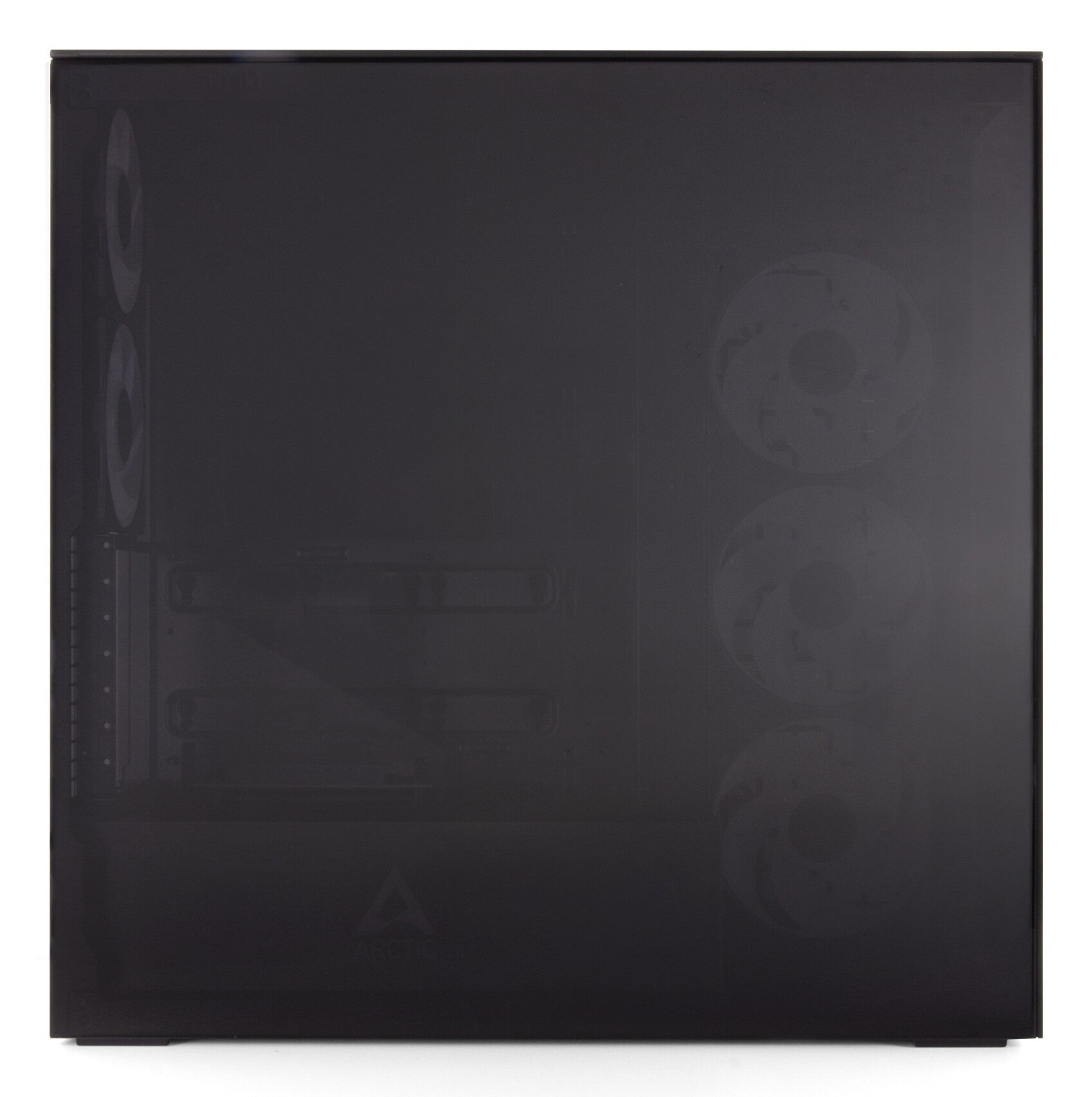 Integrated glass panel with 24 A-RGB LEDs illuminates the lower section of the case.