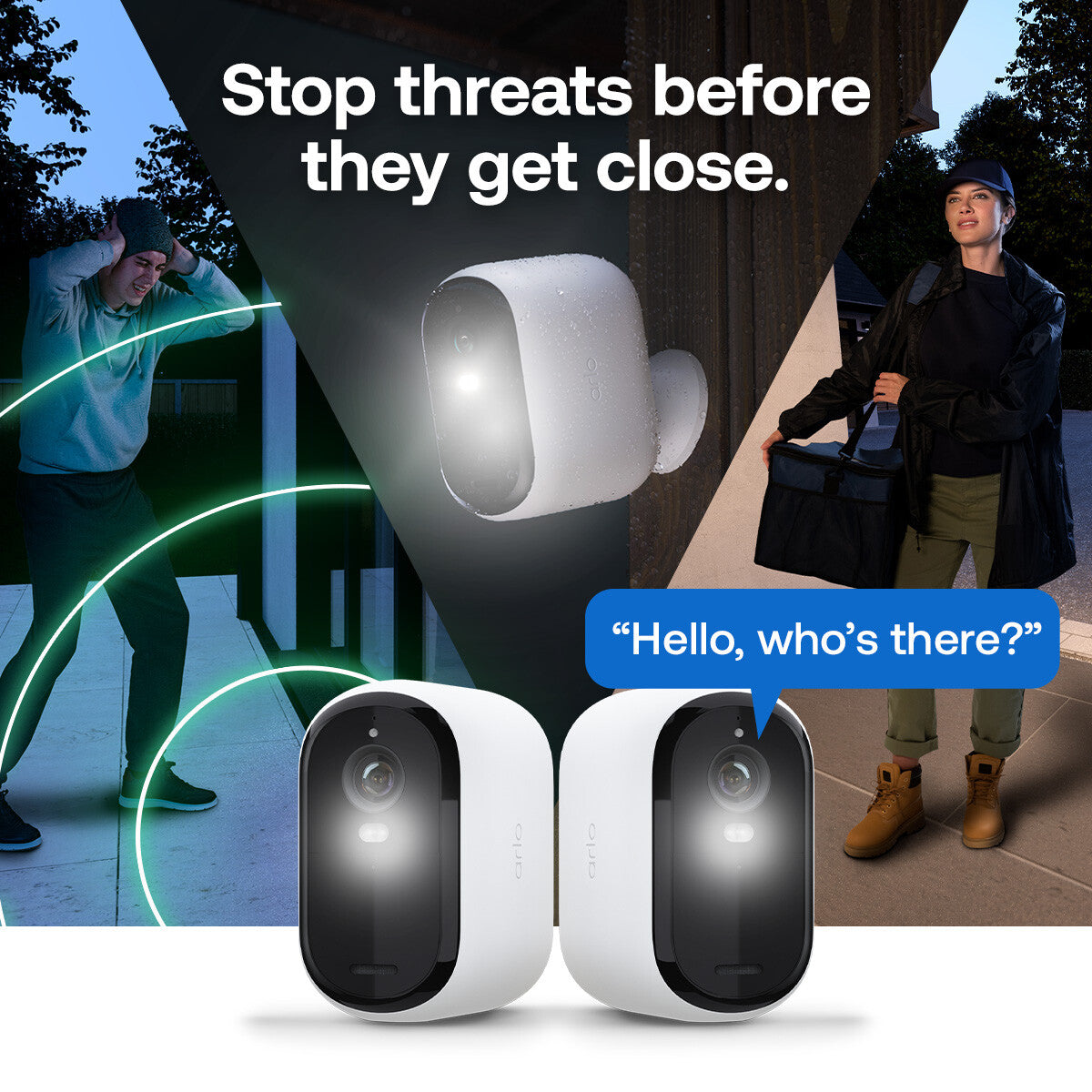 The outdoor security camera that sees more and stays powered for longer. With an XL battery delivering up to 4x more battery life than our standard outdoor camera, it’s ideal for high-traffic areas or hard-to-reach locations. Capture crisp 2K video with colour night vision and stop threats before they reach your home with a built-in spotlight and siren. Pair with Arlo Secure (sold separately) for smart AI detection that recognises people, animals, vehicles, parcels, animals and fire - so you can choose only alerts that matter. A wide 130° field of view keeps more of your home covered, while Activity Zones and cloud recording features* help you focus on what’s important. Reliable, powerful and low maintenance, it’s protection that goes the distance.