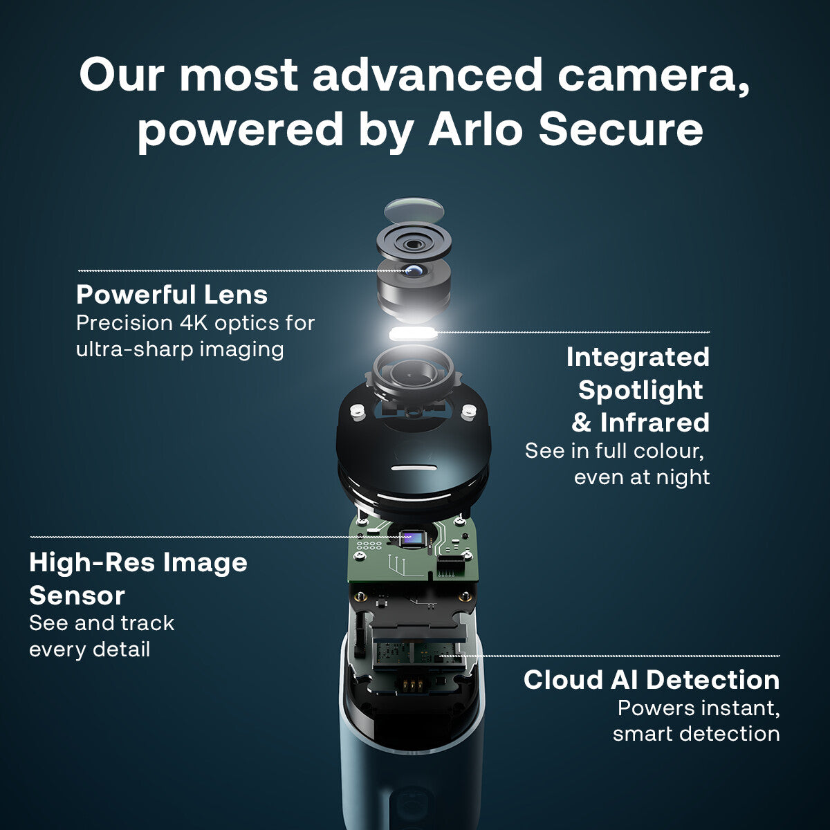 Advanced 4K resolution captures 4x more detail so you can zoom in on faces with no distortion. Get instant motion alerts and live-stream video or choose an Arlo Secure Subscription (sold separately) to save video clips in the cloud and look back at them anytime in the app. Hear and speak to visitors as if you were there with specialised noise-cancelling audio technology and see in vibrant colour even in the darkest night.