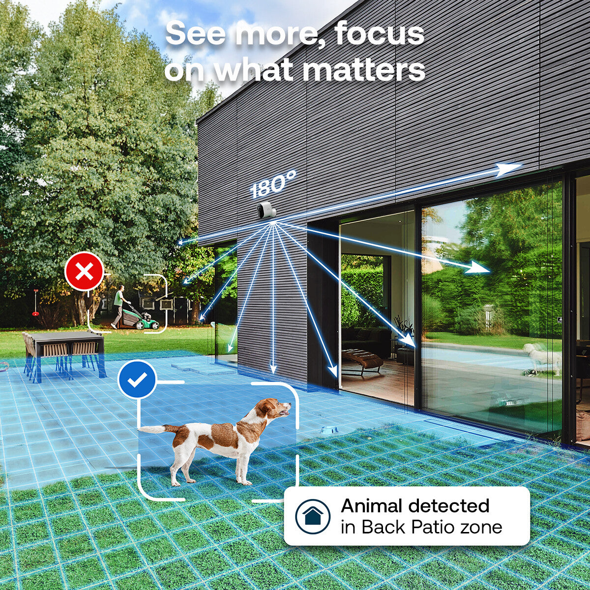 Only get notifications for important things and reduce false alerts by choosing if you want the camera to identify people, animals, cars or packages.