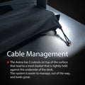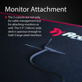 Its huge 14 square feet (1.31 sq. meters) of rock-solid surface and custom mouse pad to cover the full space liberate you to game with new intensity. The arena is a completely new design, developed by our Swedish design team with gamers to maximize play and comfort. The 160cm (5' 3") width allows for three large monitors to envelop you in the game environment. The 82 cm (2' 8 1/4") depth gives you a huge field of play for your mouse, keyboard, or other devices. And it all fits cleanly thanks to Arena's unique cable management scheme.