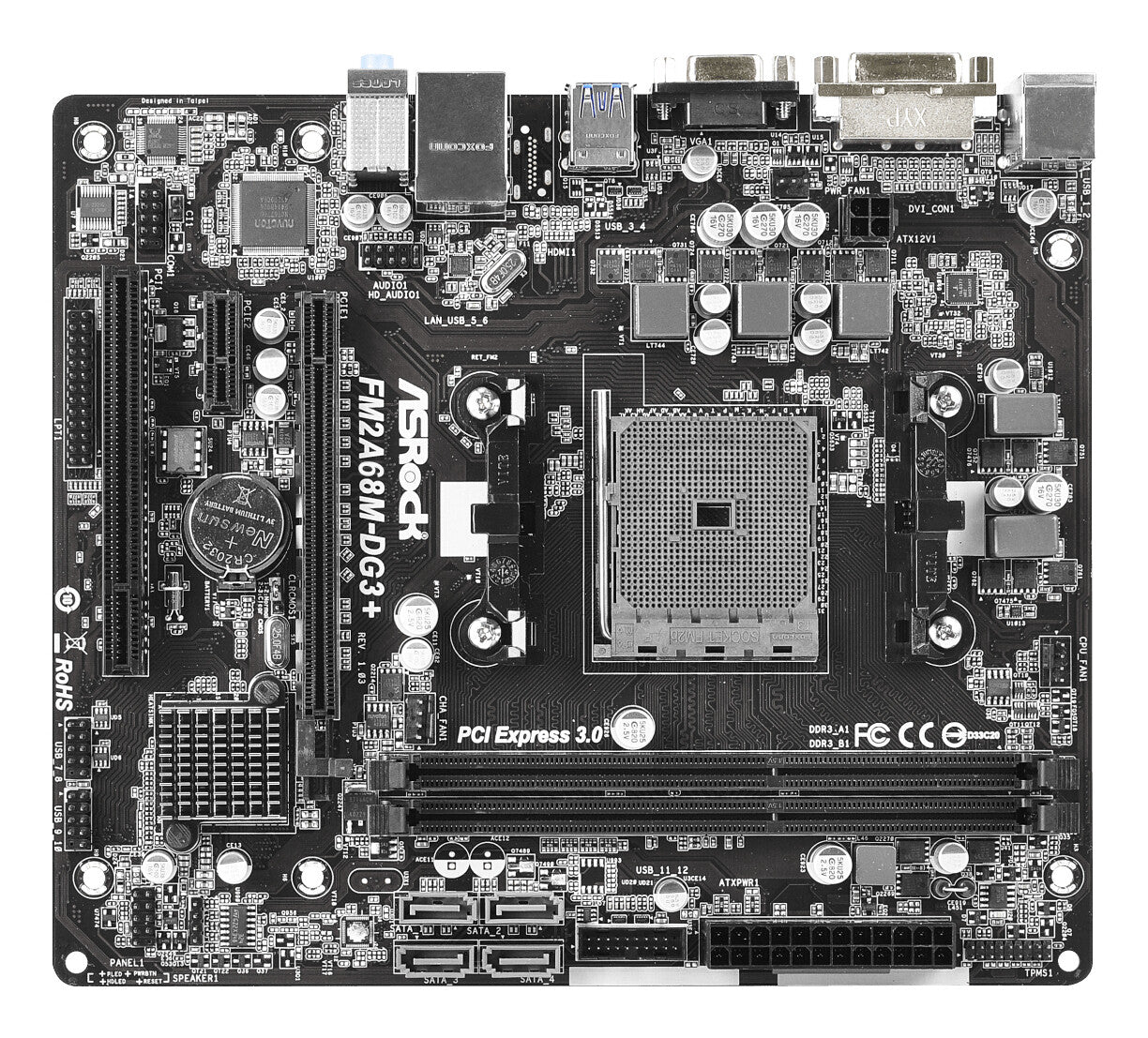 This motherboard supports the next-gen PCIe 3.0! Compared to PCIe 2.0, PCIe 3.0 offers up to 2X data transferring bandwidth for VGA cards, thus providing ultimate graphics performance. (Available only with AMD FM2+ CPUs)