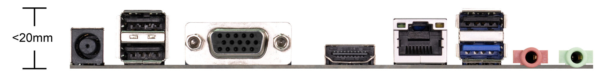 Allocate the internal space of your chassis more smartly! The DC-In jack is compatible with 19V wide range power adapters. Without the bulky power supply unit, this unique design allows the motherboard to fit in compact chassis.