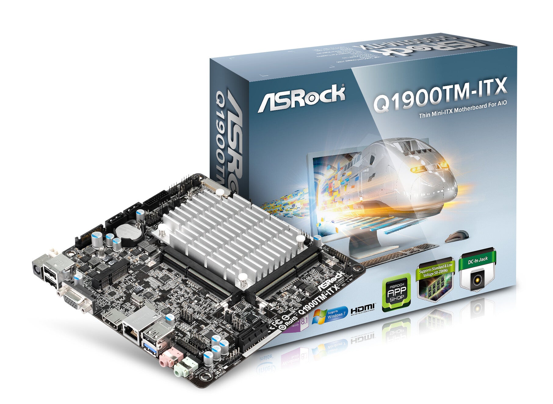 Built with an Intel® Quad-Core J1900 Processor and a Thin Mini-ITX motherboard, this motherboard packs plenty of expandability, superb integrated performance, and abundant graphics outputs. With its excellent hardware configuration and software support, it is your ideal solution to do business work, play games, or enjoy video and music entertainment. ASRock presents you the best motherboard to build your own all-in-one PC!