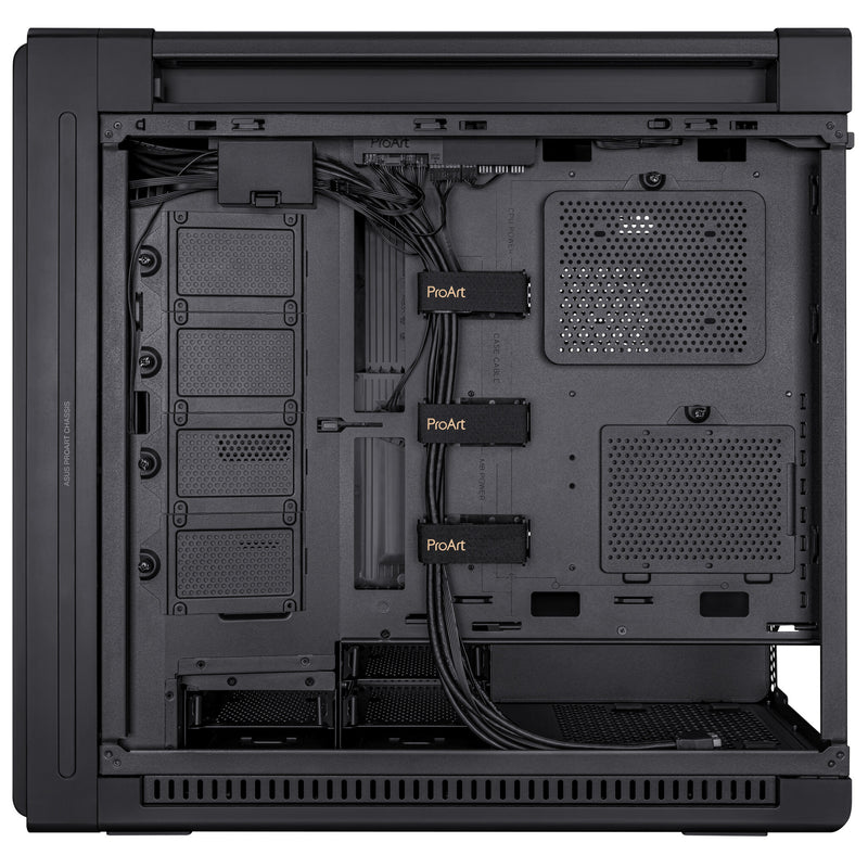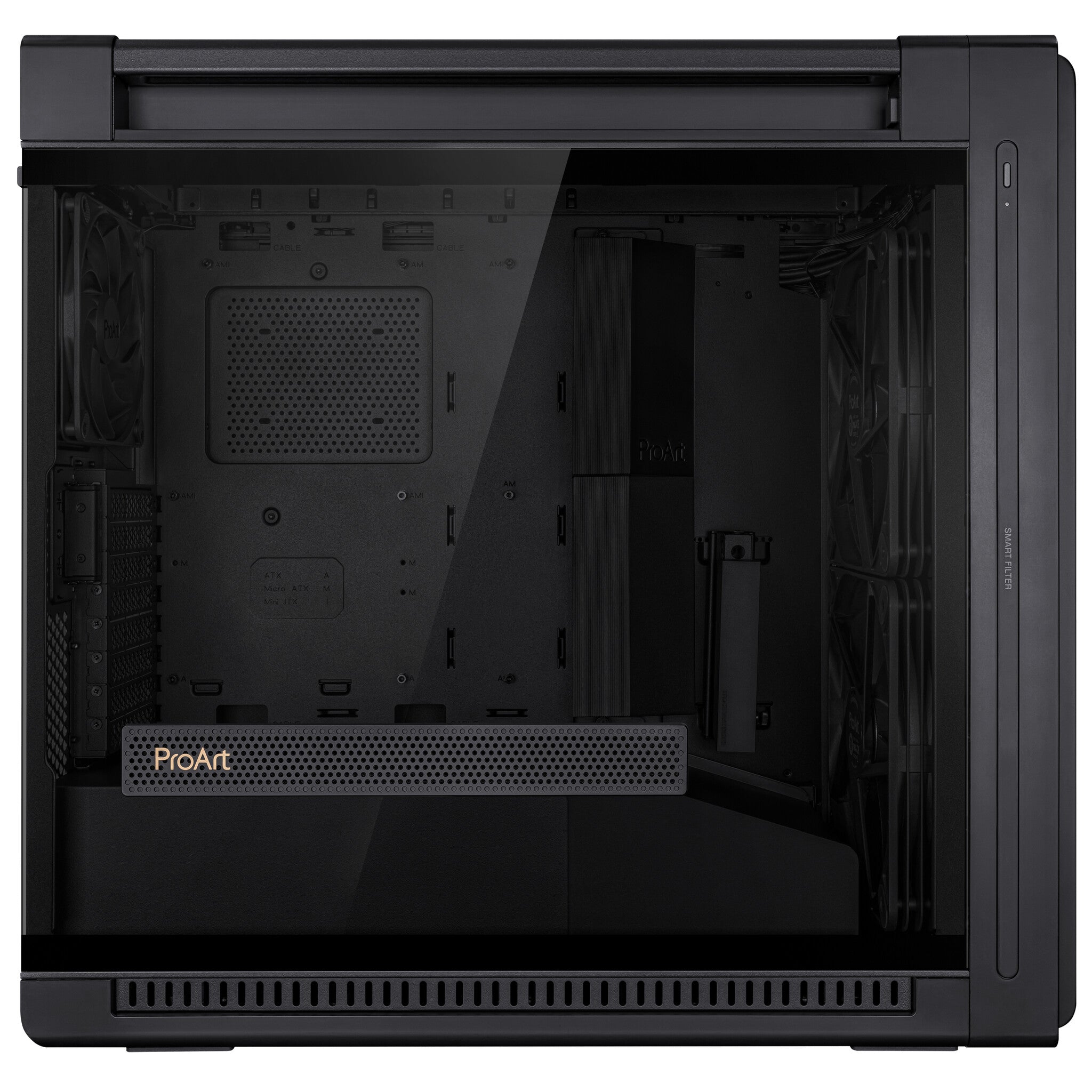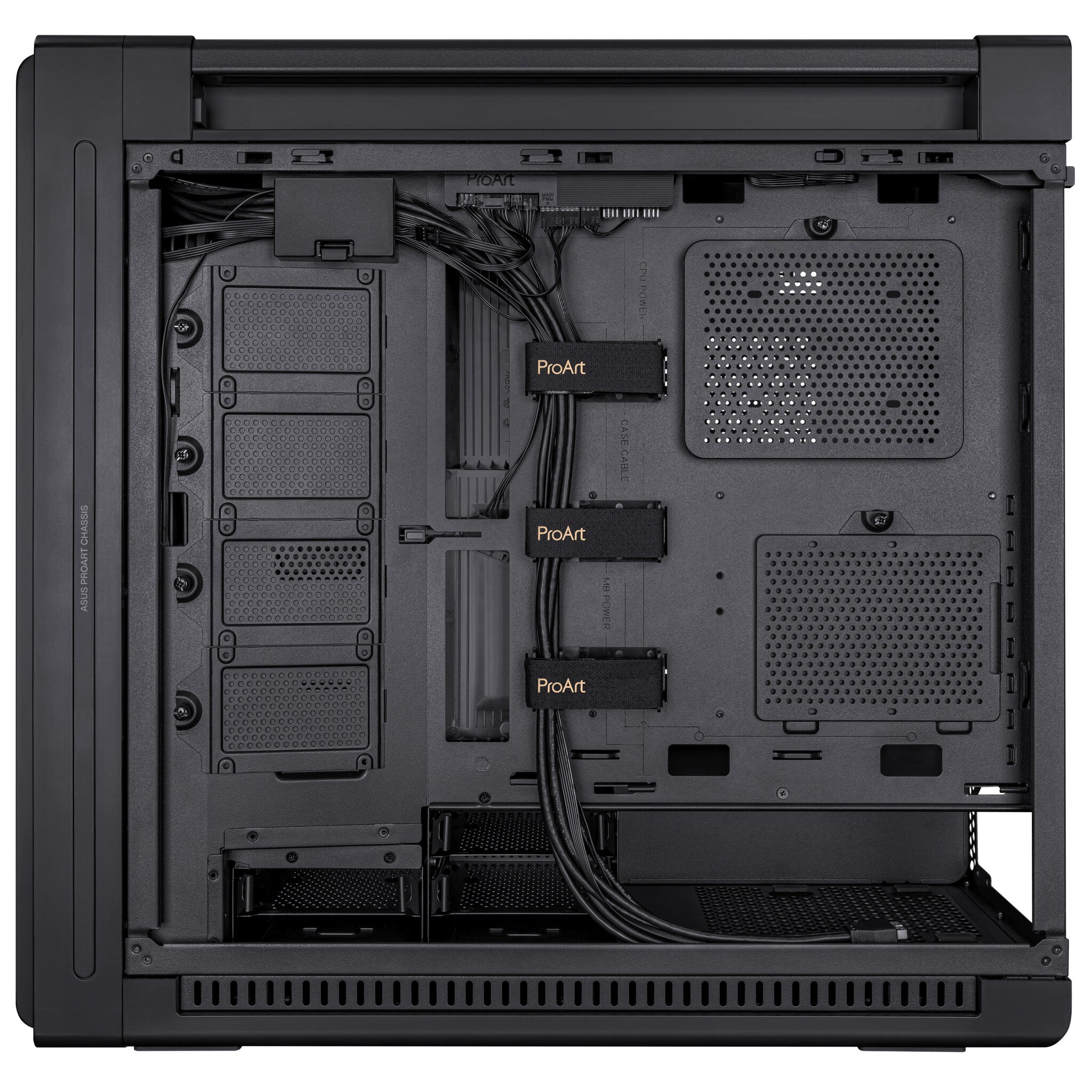 Engineered for optimal airflow and enhanced cooling, the ProArt PA602 case is a dream for creative professionals seeking focused workflows. With a front panel designed for maximum air intake, thick pre-installed 140 mm rear fan and two 200 mm front fans, an integrated fan hub and support for a 420 mm radiator on the top, it delivers top-tier performance right out of the box. The ProArt PA602 caters to those in search of high-end thermal solutions. Meanwhile, a minimalist design ensures creators can work with fewer distractions.