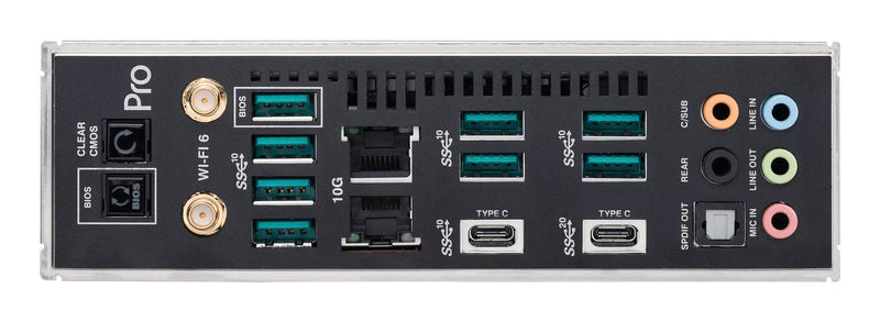 With metallic black aluminum extrusions, stainless steel black mesh with highlighted details, and a transparent smoky gray I/O cover, Pro WS WRX80E-SAGE SE WIFI presents a professional, low-profile look for content creators.