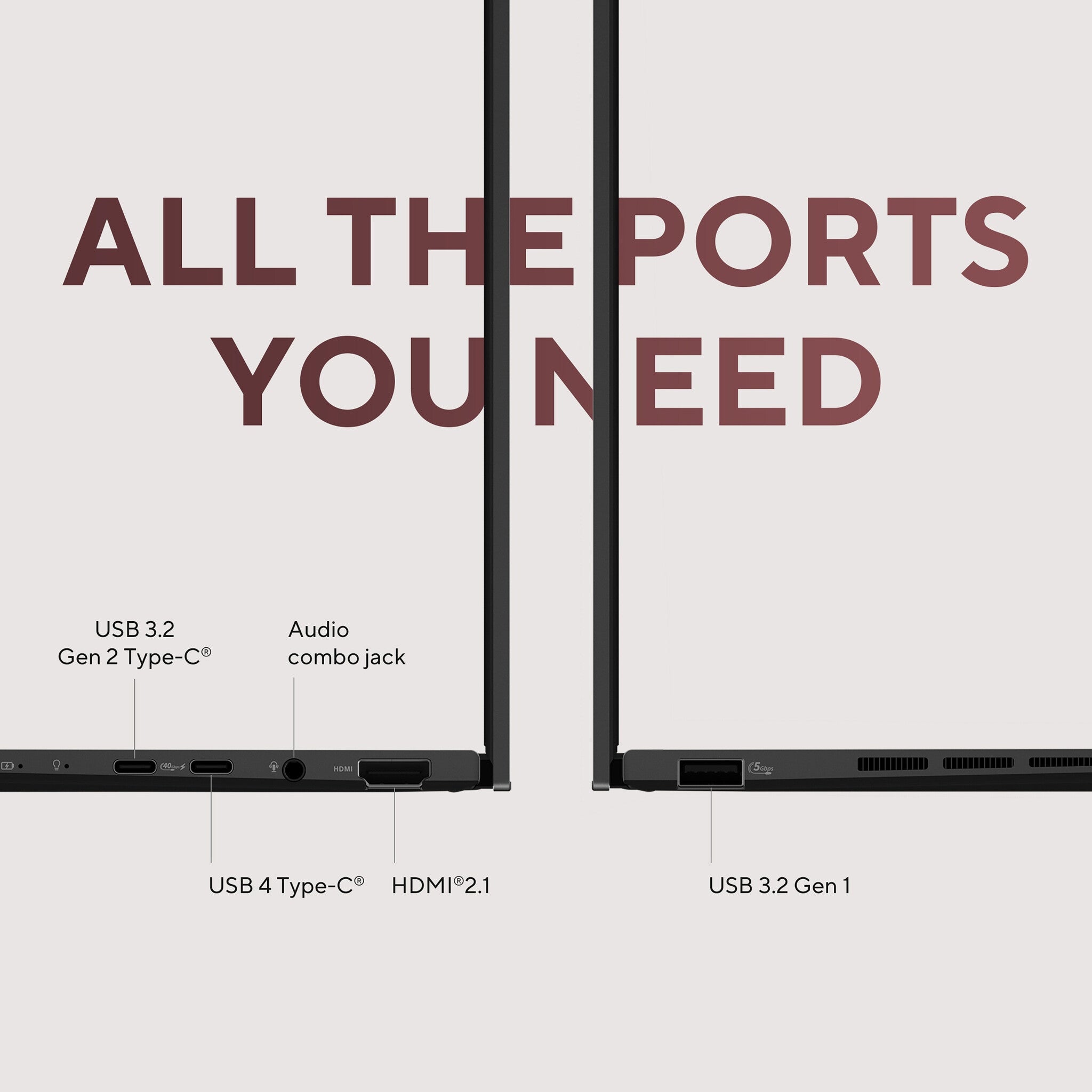 - Full I/O ports include 1 x USB 4.0 Gen 3 Type-C, 1 x USB 3.2 Gen 2 Type-C, 1 x USB-A 3.2 Gen 2, 1 x HDMI 2.1, and 1 x audio jack