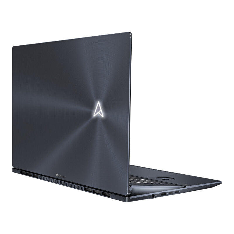 With its sophisticated matte Tech Black livery, glossy detailing and all-metal construction, Zenbook Pro 16X OLED has a totally sophisticated look and feel. The unibody is CNC-machined for solidity from super-tough aerospace-grade 6000-series aluminum alloy, and the anti-fingerprint coating on the outer surfaces keeps the elegant finish pristine. Meanwhile, the lid features the iconic spun-metal Zenbook finish with our new illuminated monogram logo placed proudly in the center.