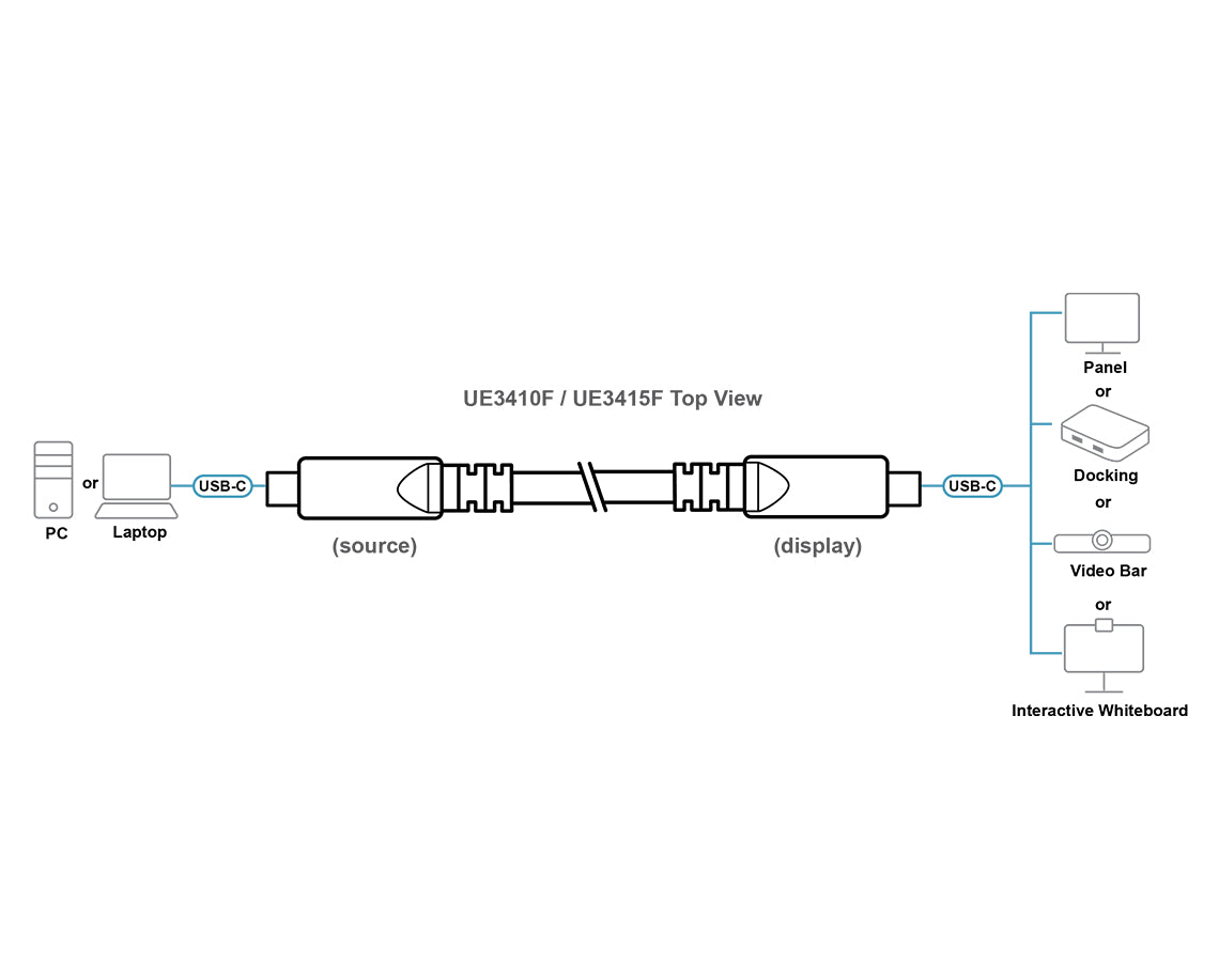 The UE3410F (10 m) / UE3415F (15 m) Ultra HD USB-C DisplayPort 2.1 Active Optical Cable is designed for high-performance video conferencing, professional presentations, and connectivity with various USB-C peripherals such as tablets, monitors, and camera devices. Supporting DisplayPort 2.1 over USB-C, it ensures stable video transmission and ultra-high USB data transfer rate (up to 10 Gbps), adapting to connected device specifications. With strong EMI/RFI resistance and active optical design, it guarantees rapid, long-distance transmission without signal degradation.