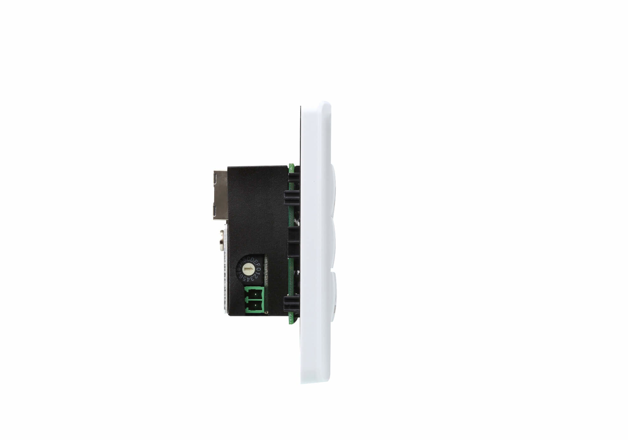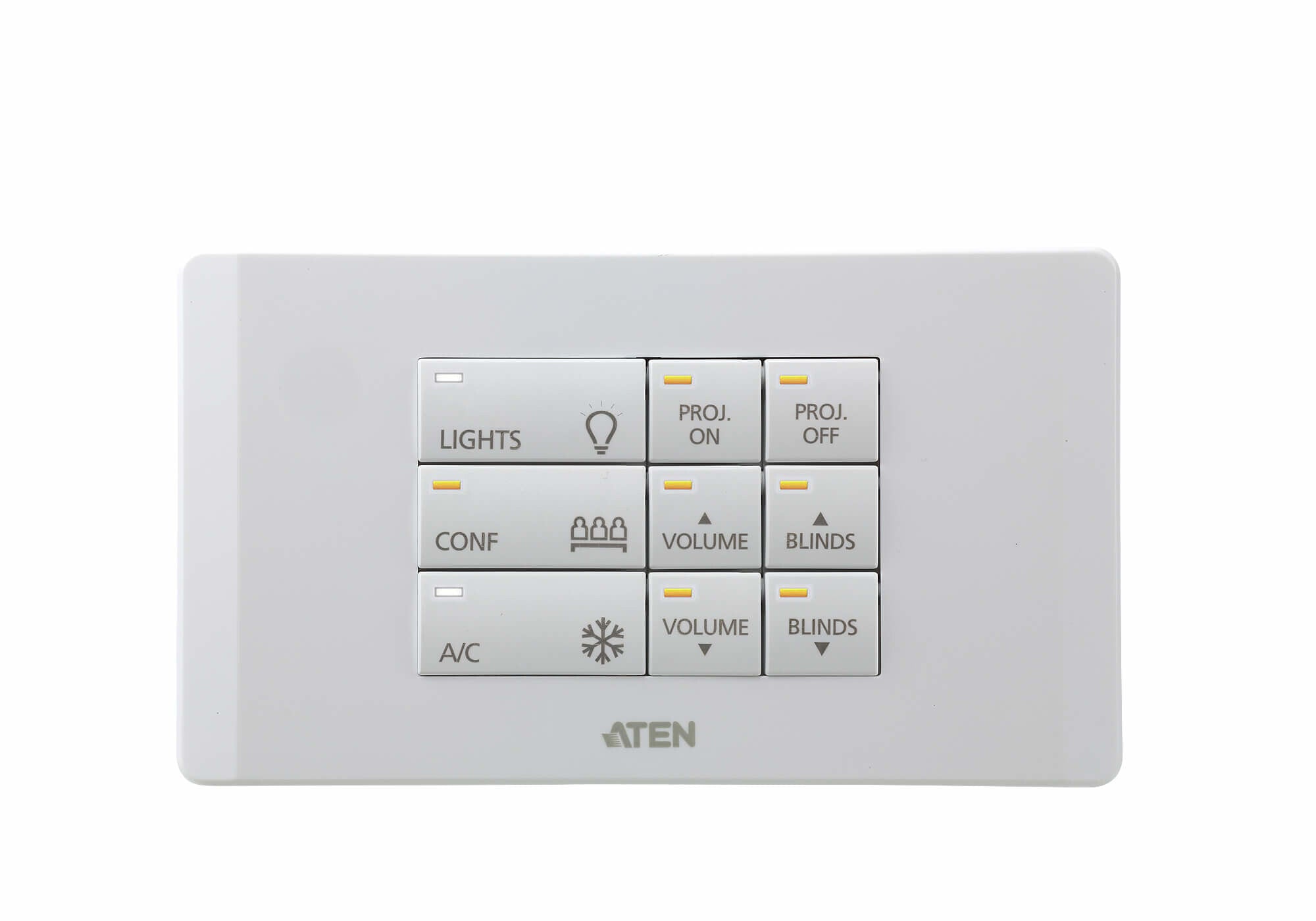 The VK112EU is a fully-customizable 12-button keypad designed for use with the ATEN Control System. The keypad provides an interface to control devices in a room from a standard wall mounted faceplate. Created with flexibility in mind, the 2-gang keypad can be laid out in 125 different combinations of 6 to 12 buttons that snap together as easy as Lego’s. By connecting to the VK2100/VK1100 Control Box over a LAN, users will find it’s effortless using VK6000 software to configure the desired control of any connected device from the keypad. With the buttons ready to go, you have instant and smart control of the facilities from a keypad or keypads that can manage any device in the room. The VK112EU is an affordable solution, perfect to serve as the primary interface in meeting rooms, or as secondary device control in classrooms and conference centers.