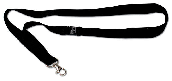 These lanyards are very handy for attaching identification badges. They also allow to hang keys, whistles and other small objects. Your hands are free while keeping your essentials safe and at your fingertips. Black lanyard with carabiner clip (44 cm long by 2 cm wide).