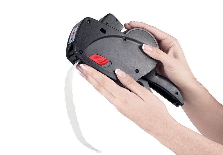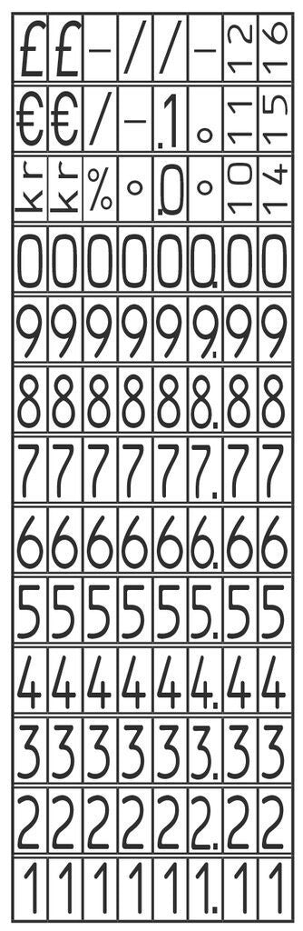 It can print a single line of numbers 0-9, dates and includes a digit selector dial offering a symbols: Kr, €, £, %, /, -, . Simply turn the dial, click the trigger and stick your labels to your products. This gun uses Avery price gun labels which are available as either removable, or as tamper evident with a permanent adhesive.