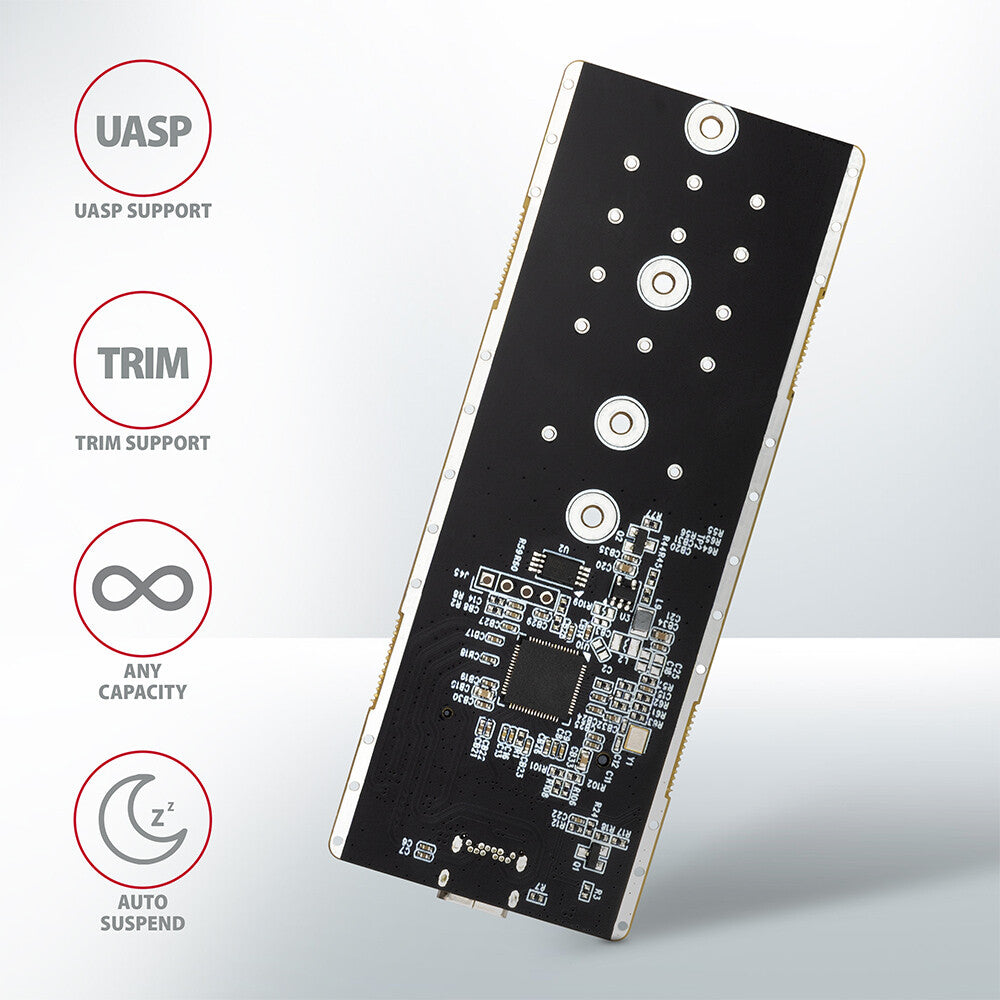 SuperSpeed USB 10 Gbit/s interface allows you to enjoy the speed of modern M.2 SSD drives. Due the fast USB 3.2 Gen 2 interface the transmission speed is up to 10Gb/s.
