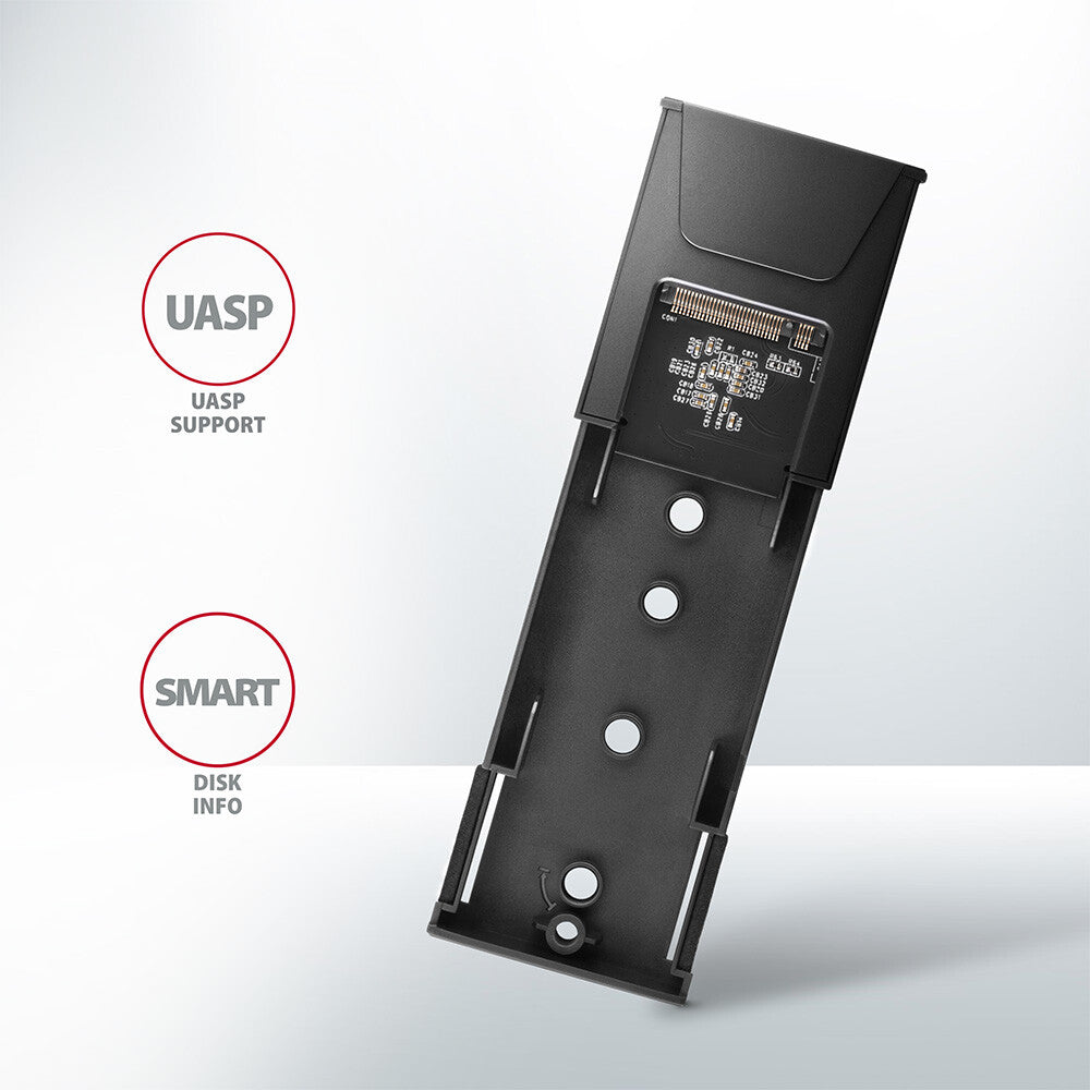SuperSpeed USB 10 Gbit/s interface allows you to enjoy the speed of modern M.2 SSD drives. Due the fast USB 3.2 Gen 2 interface the transmission speed is up to 10Gb/s. The external M.2 box also supports other modern functions, e.g. UASP and allows reading S.M.A.R.T. information that monitors the status of the disk. Standby support when idle.