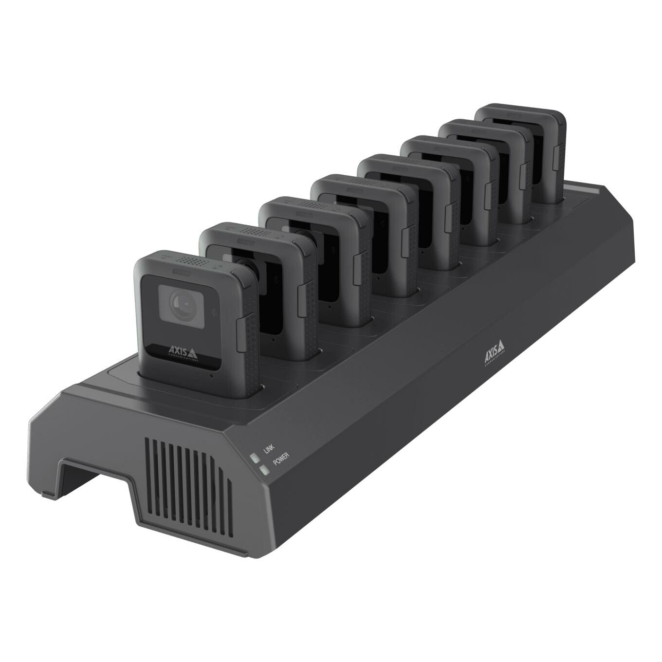 Drop your AXIS body worn cameras into AXIS W703 Docking Station 8-bay to offload and recharge, so they’re ready to grab and go the next time you are.