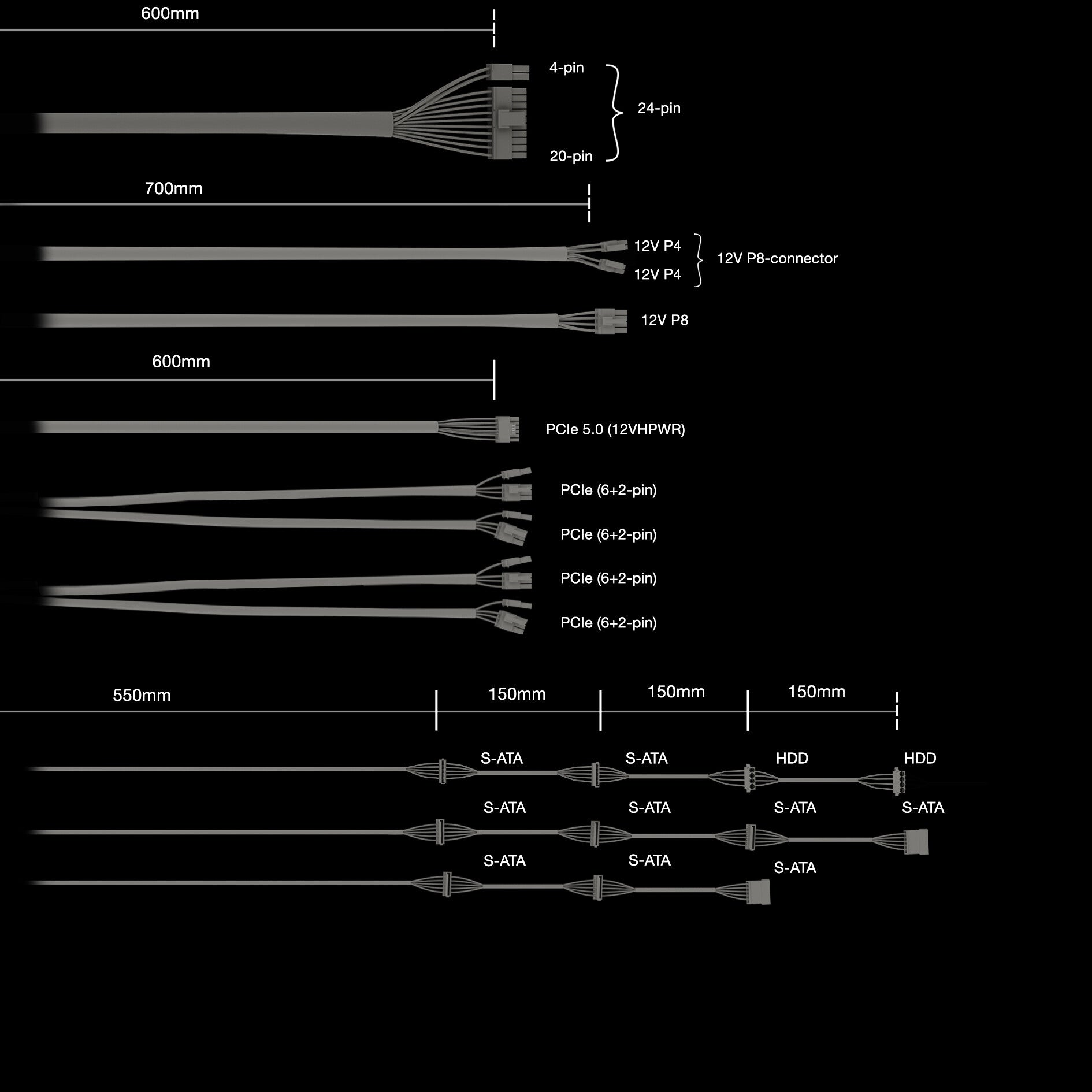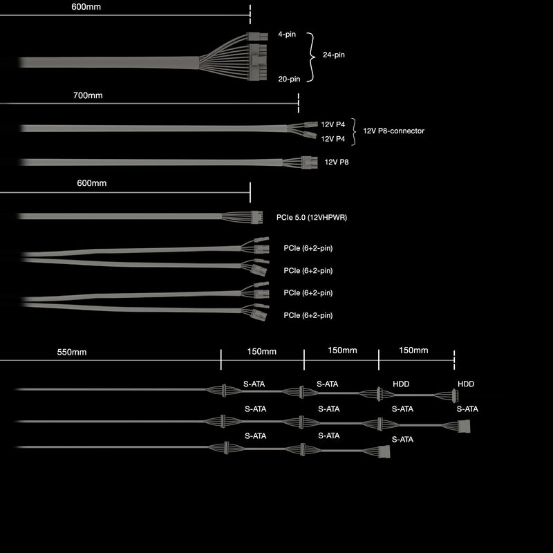 - ATX 3.1 PSU with full support for PCIe 5.1 GPUs and GPUs with 6+2 pin connectors