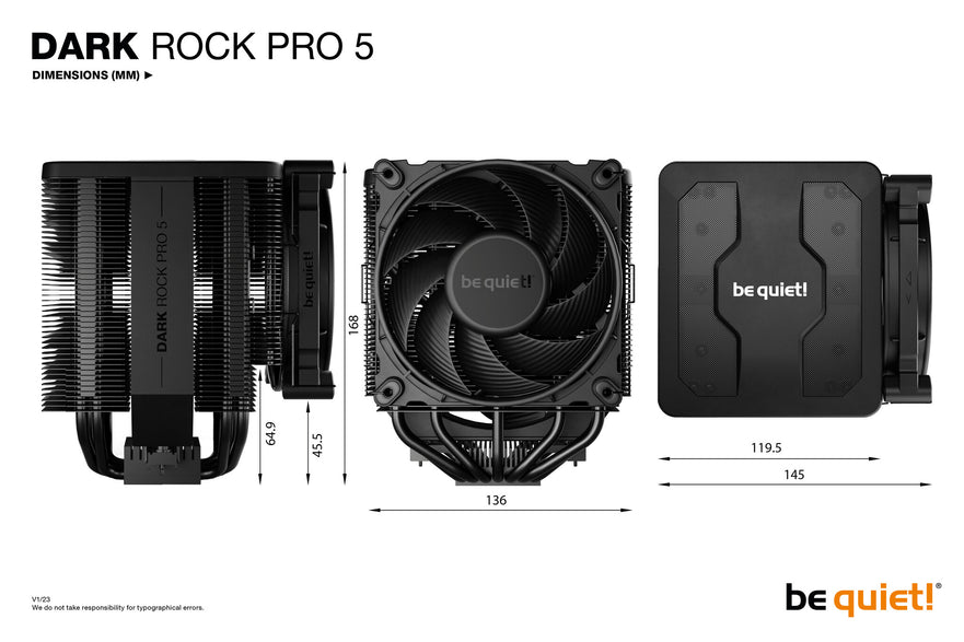 Dark Rock Pro 5 offers an immense cooling performance and virtually inaudible operation. Excellent for heavily overclocked systems and demanding workstations. Dark Rock Pro 5 aims for users that have highest claims on performance but do not want to dispense on virtually inaudible operation at the same time.