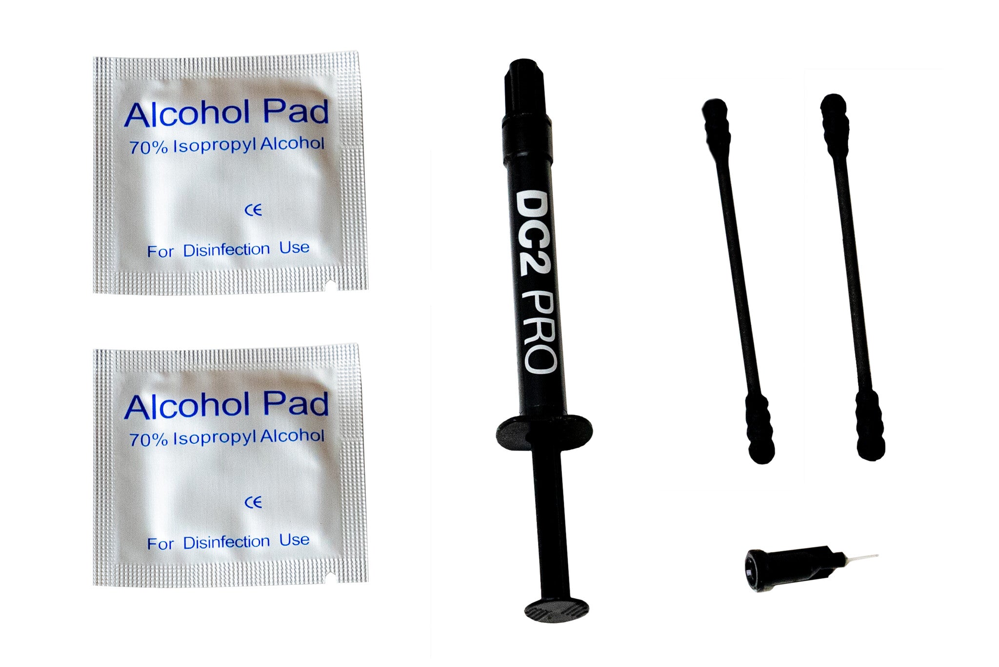 1g of content is enough for up to 10 applications – a true testament to the sheer power DC2 Pro provides. 2 cotton swabs in the scope of delivery make for an easy and clean application on the CPU. The alcohol pads that come with DC2 Pro allow the user to purge the CPU thoroughly without residues.