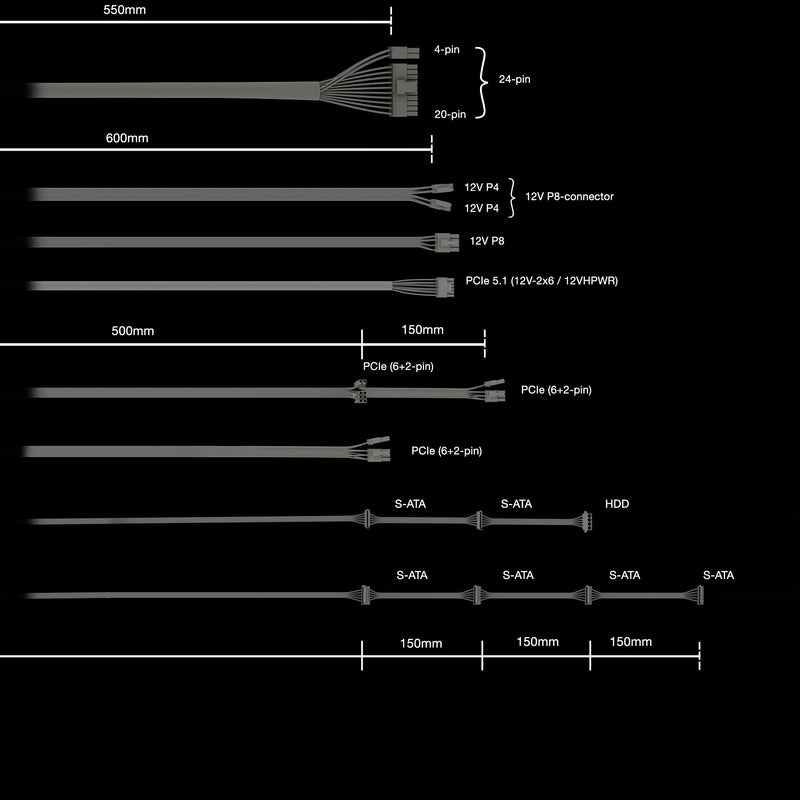 - ATX 3.1 PSU with full support for PCIe 5.1 GPUs and GPUs with 6+2 pin connectors