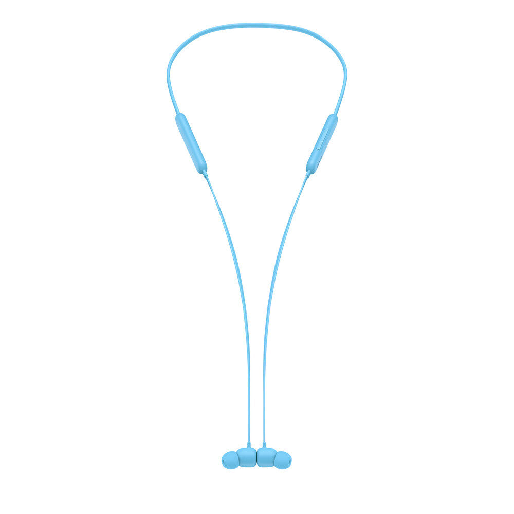 2. Testing conducted by Apple in August 2020 using pre-production Beats Flex and software paired with iPhone XS Max, 8 Plus and 7 Plus units and pre-release software. The playlist consisted of 358 unique audio tracks purchased from the iTunes Store (256-Kbps AAC encoding). Volume was set to 50%. Total listening time was up to 12 hours. Testing consisted of full Beats Flex battery discharge while playing audio until Beats Flex stopped playback. 10-Minute charge testing conducted with drained Beats Flex that were charged for 10 minutes, then audio playback was started until Beats Flex stopped playback. Battery life depends on device settings, environment, usage and many other factors.