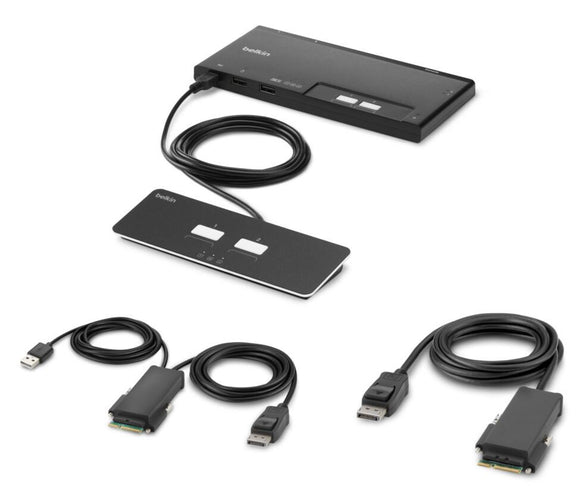 - Small footprint for 2 port, single monitor DisplayPort KVM