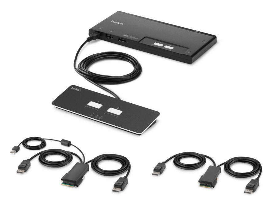 - Small footprint for 2 port, dual monitor DisplayPort KVM