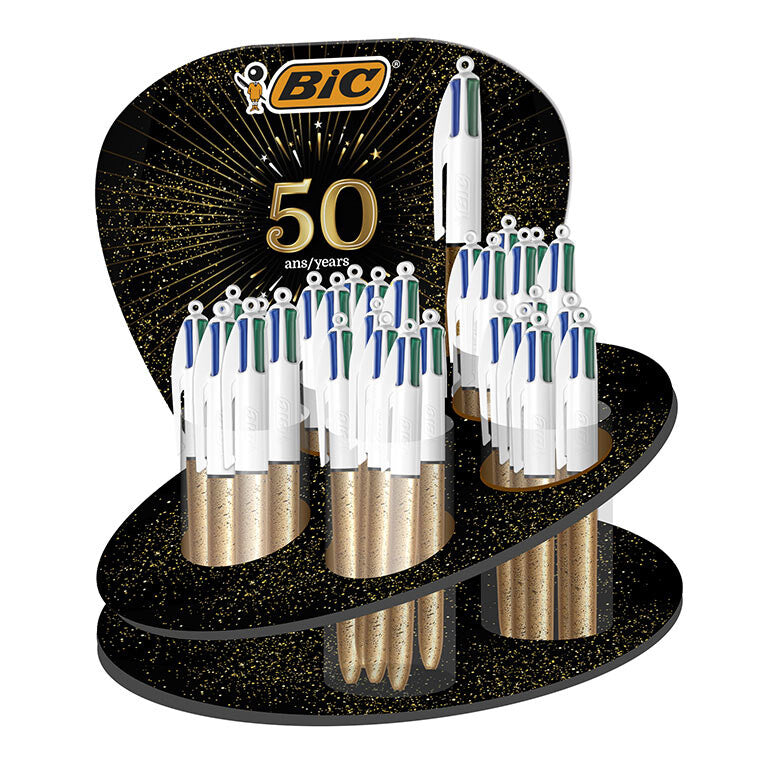 The BiC 4 Colours Champagne Effect Pen gives you 4 different fun colours of ink in the same pen, saving you space in your pencil case and time switching between colours!