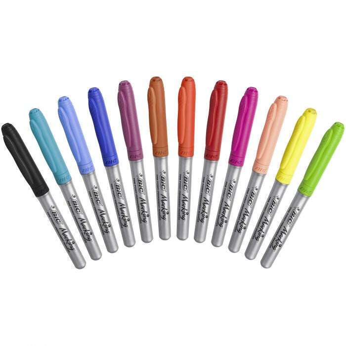BIC Marking Colour Permanent Markers are perfect for labelling, decorating or doodling in a range of bright, vibrant colours! As well as this, they feature colour coded caps and rubber grips for quick and easy identification. The Markers write on a number of surfaces, including glass, metal and plastic. You can even use them to doodle on your photos! Choose from a range of colours including yellow, pink, green, blue and red.