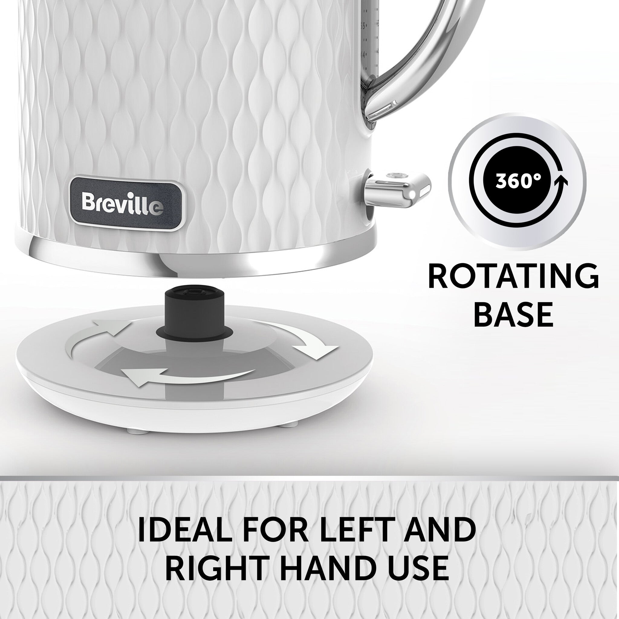 - 360° cordless base is perfect for left and right hand use