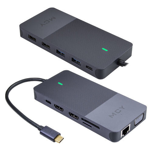 Our 11-in-1 USB-C docking station offers an integrated solution for power, data, ethernet & AV for USB-C equipped PCs and laptops.