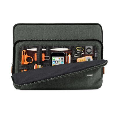 Remember when a sleeve was just a sleeve? That just doesn't cut it, anymore. That's why every Cocoon Graphite sleeve goes above and beyond industry standards to make sure you have exactly what you need, wherever you go. The padded interior of the 13" MacBook Pro with Retina Display compartment is lined with plush faux fur. The gunmetal hardware and unique wood zipper pulls add that extra element of style that is sure to keep you on top of your game. And, at the heart of every Cocoon product is the GRID-IT!®, the world's most versatile organization system. Now, your hardware and accessories are protected and organized in one sleek sleeve.