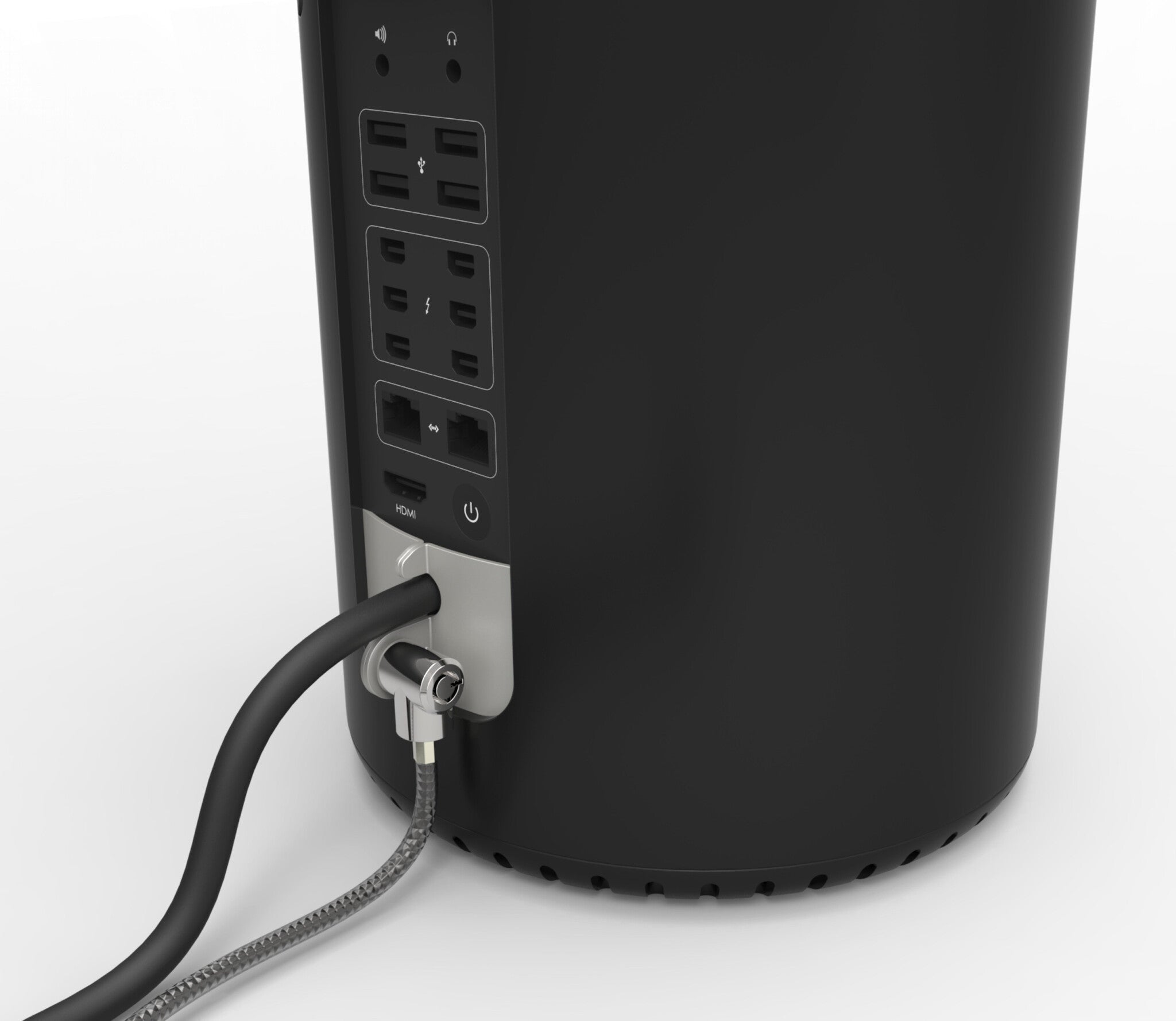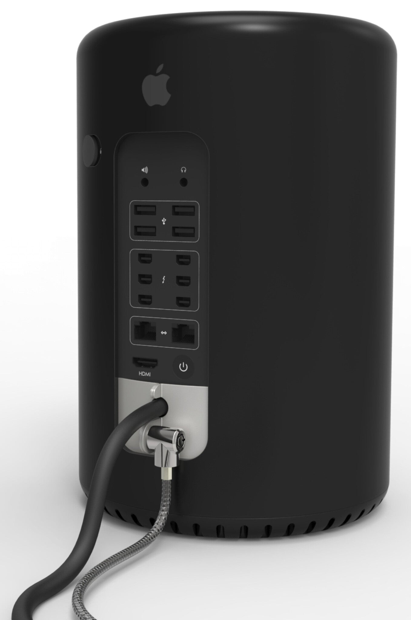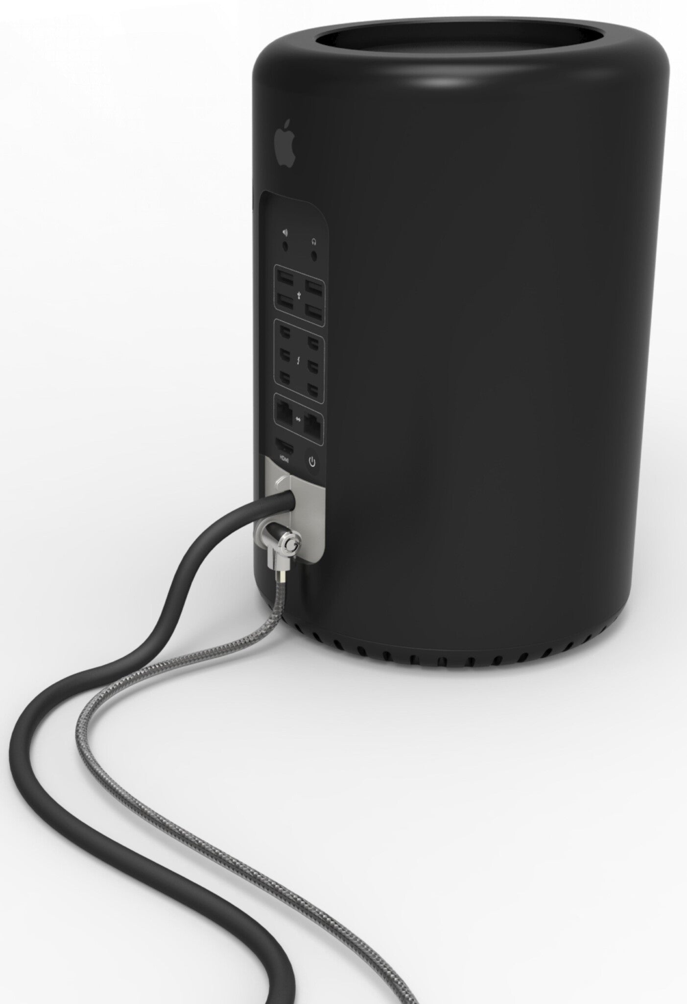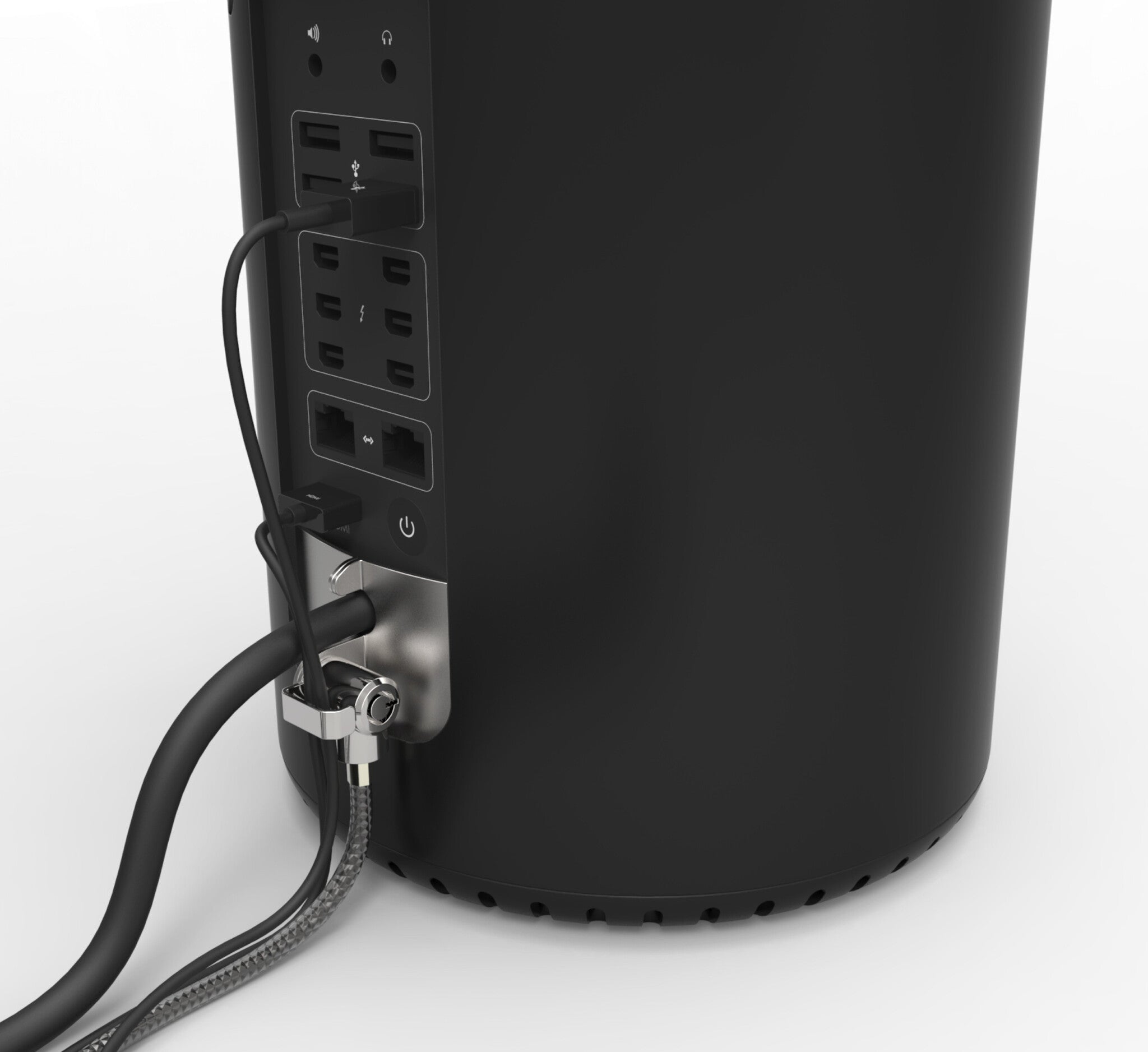 The new Mac Pro Lock Bracket with Security Cable Lock fits comfortably underneath the cylinder lid to offer complete protection of the device and its hardware components. By designing the Mac Pro Lock to fit the curvature of the new Mac Pro the bracket plates sit securely over the power cable locking the lid into place. The bracket plate has an extended lip that will allow you to attach the included Security Cable Lock ensuring your Mac Pro workstation and all its impressive (and expensive) hardware are not going anywhere.