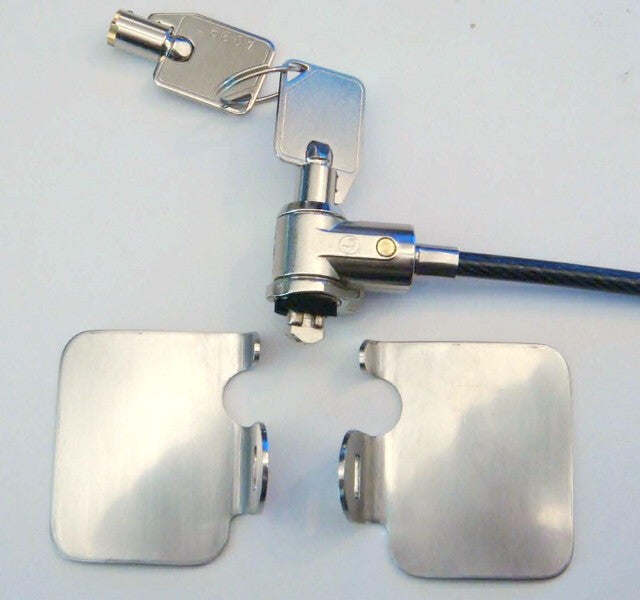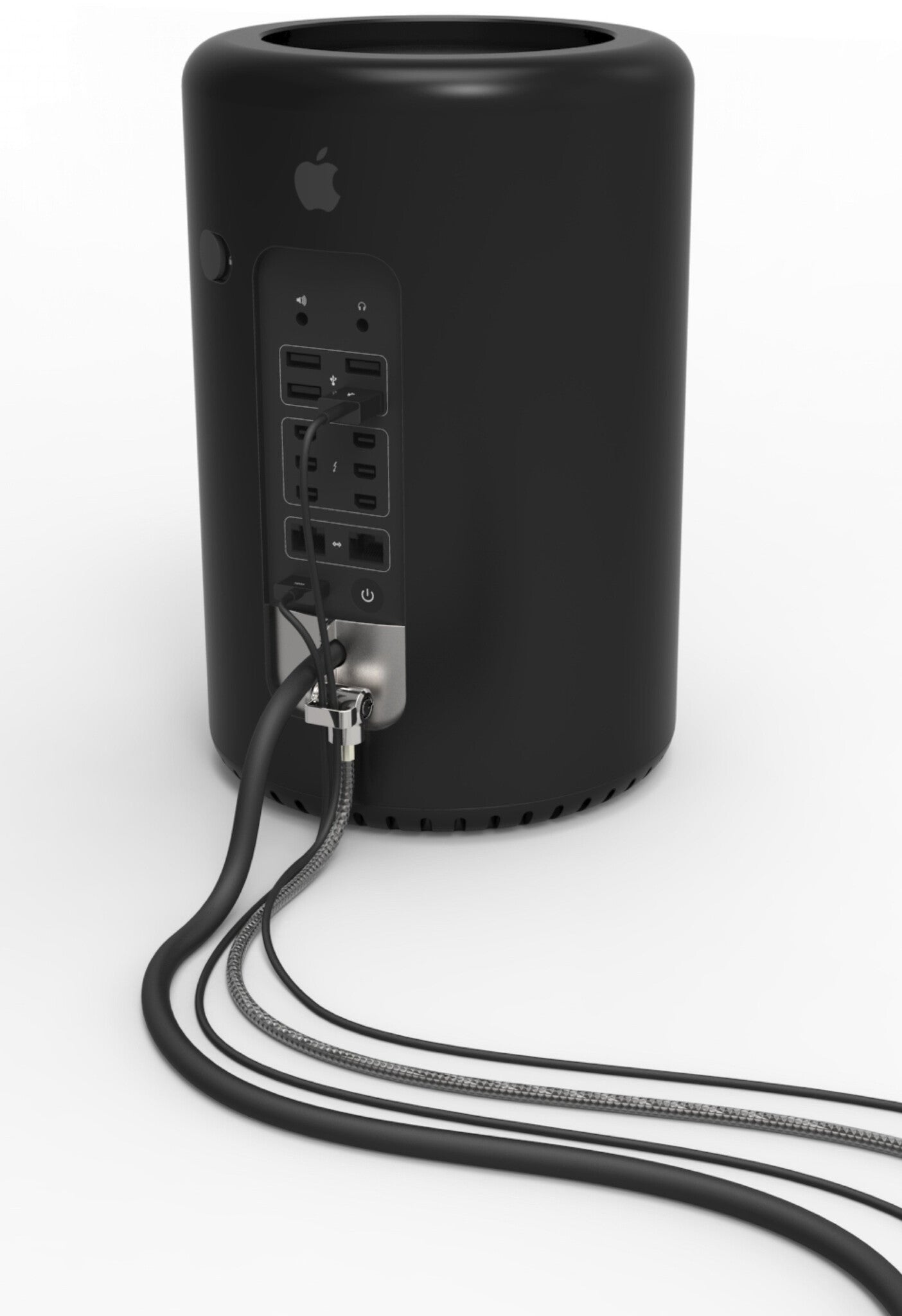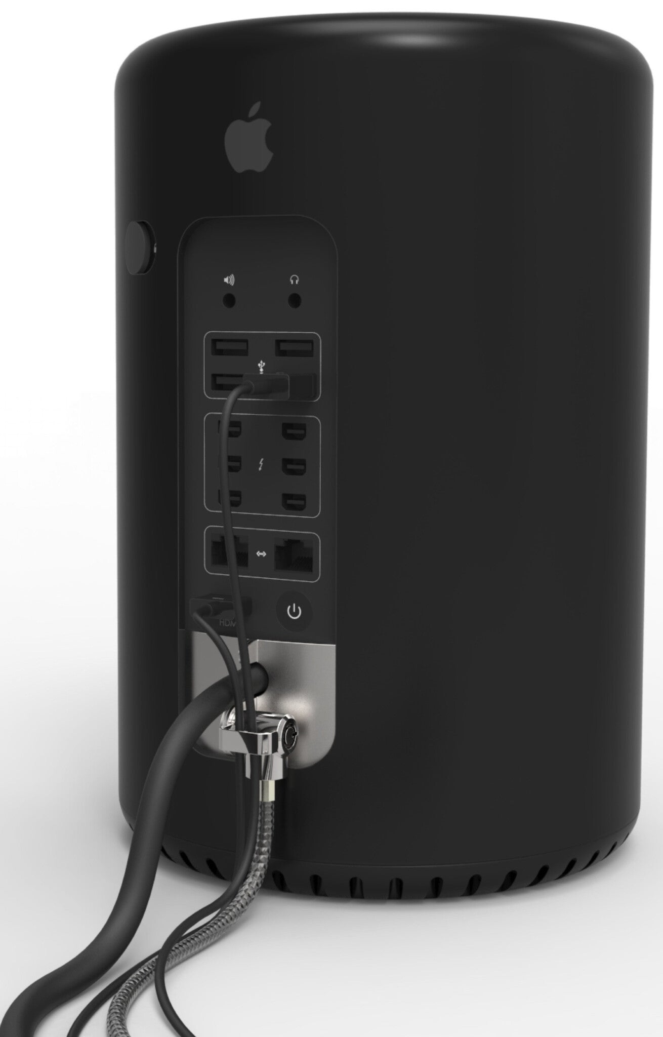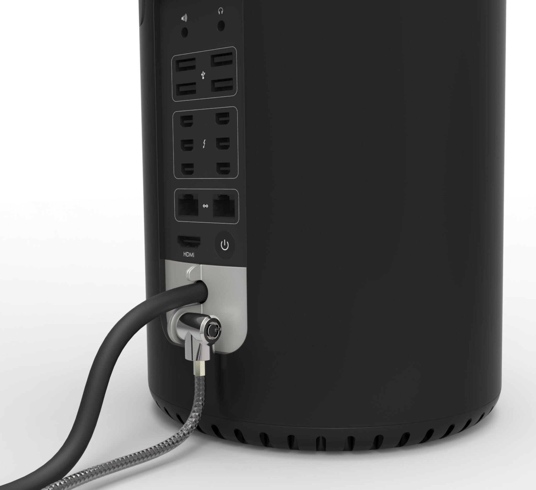 The new Mac Pro Lock Bracket with Security Cable Lock fits comfortably underneath the cylinder lid to offer complete protection of the device and its hardware components. By designing the Mac Pro Lock to fit the curvature of the new Mac Pro the bracket plates sit securely over the power cable locking the lid into place. The bracket plate has an extended lip that will allow you to attach the included Security Cable Lock ensuring your Mac Pro workstation and all its impressive (and expensive) hardware are not going anywhere.