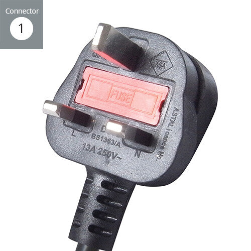 connektgear 3m 8 Way Horizontal Rack Mount Power Extension Block UK Plug to 8 x C13 Sockets - Black