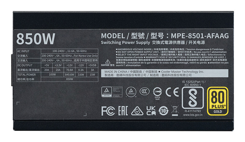Cooler Master MWE Gold 850 V2 ATX 3.1 power supply unit 850 W 24-pin ATX Black
