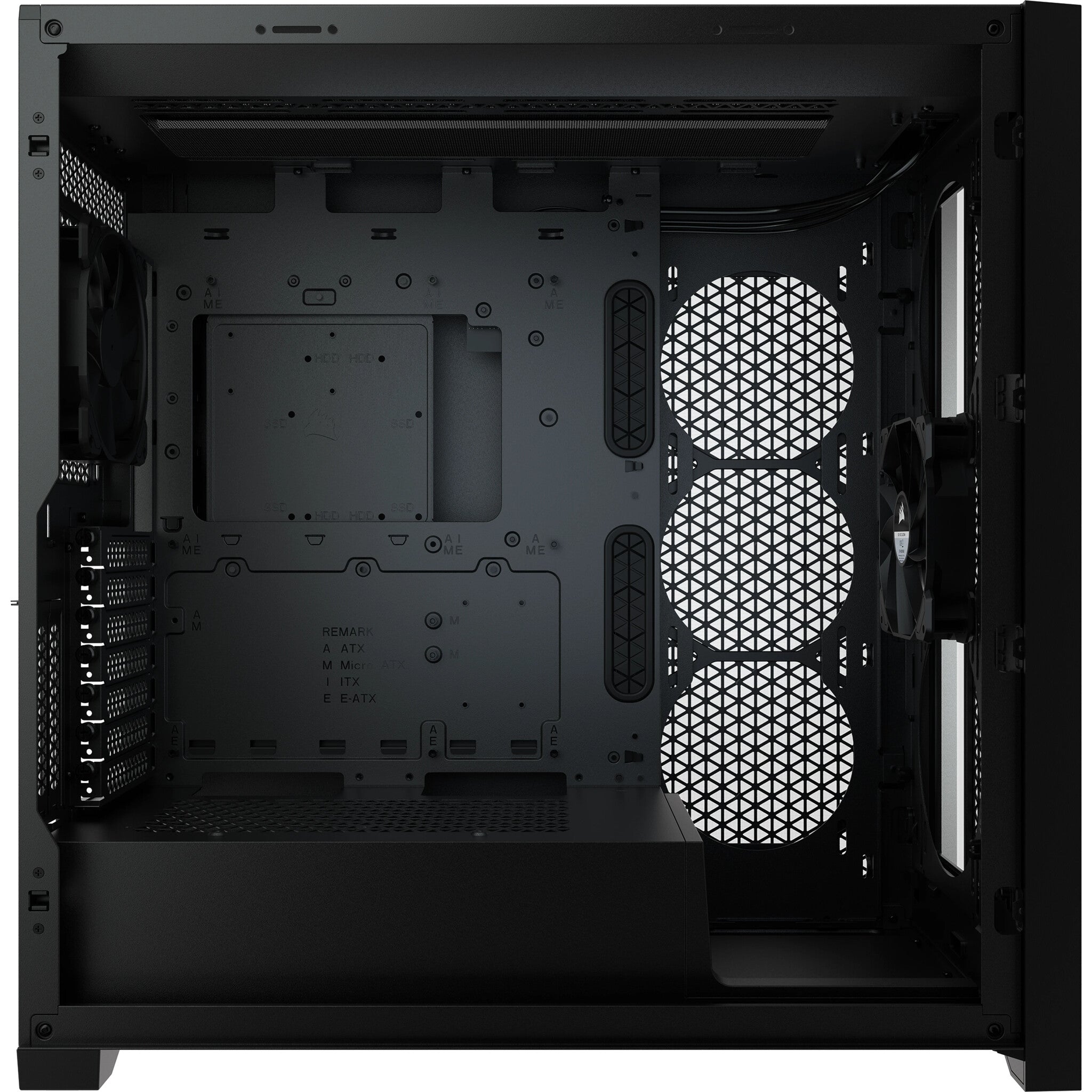Maximum Cooling Potential: A spacious interior fits up to 10x 120mm or 4x 140mm cooling fans, along with multiple radiators including up to a 360mm in front and a 360mm push/pull in the roof.
