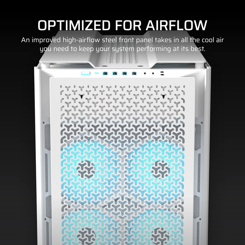 An improved high-airflow steel front panel, now removable for easy cleaning, takes in all the cool air you need to keep your top-of-the-line components performing at their best.