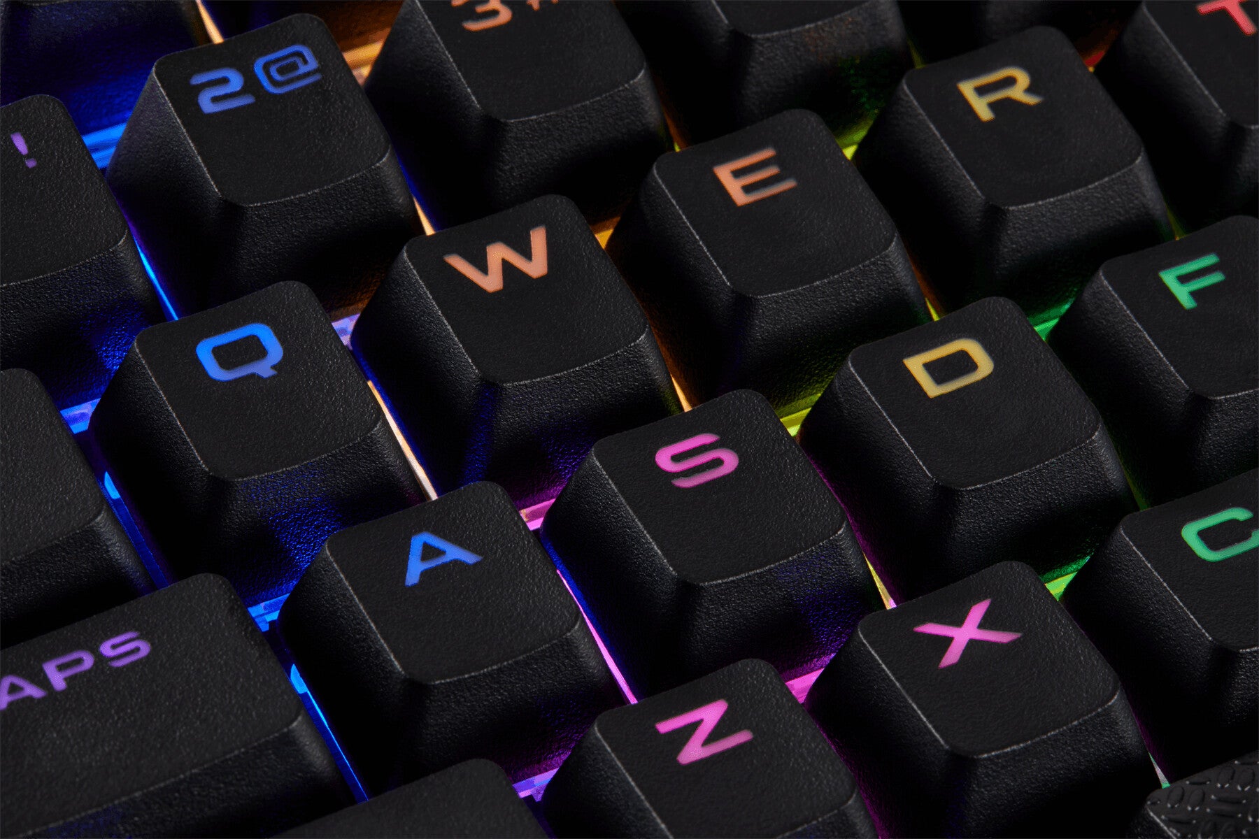 CORSAIR Double-shot keycaps are backlit compatible, allowing keycap upgrades without compromising on visual RGB effects.