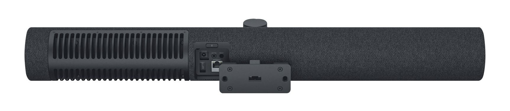 - Complete conferencing solution with speakers, microphones, and cameras in one front‑of‑room device