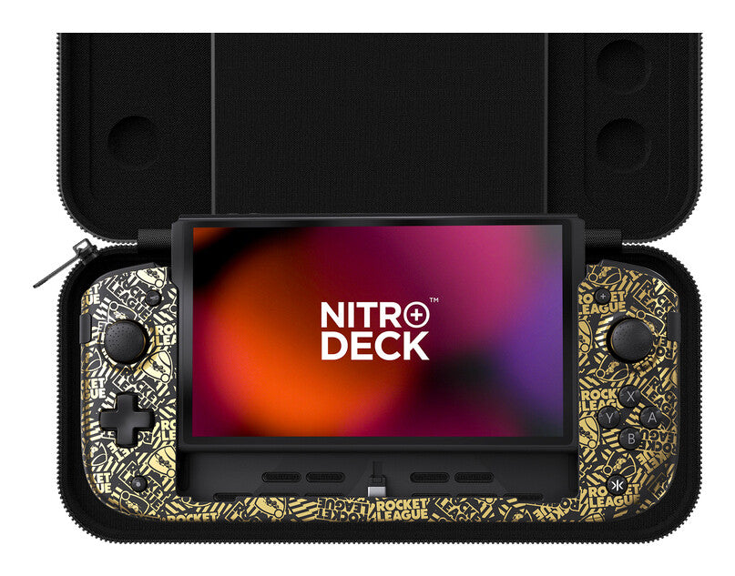 Introducing the Nitro Deck+ Rocket League Gold Edition with Carry Case for Nintendo® Switch™ & the OLED Model.