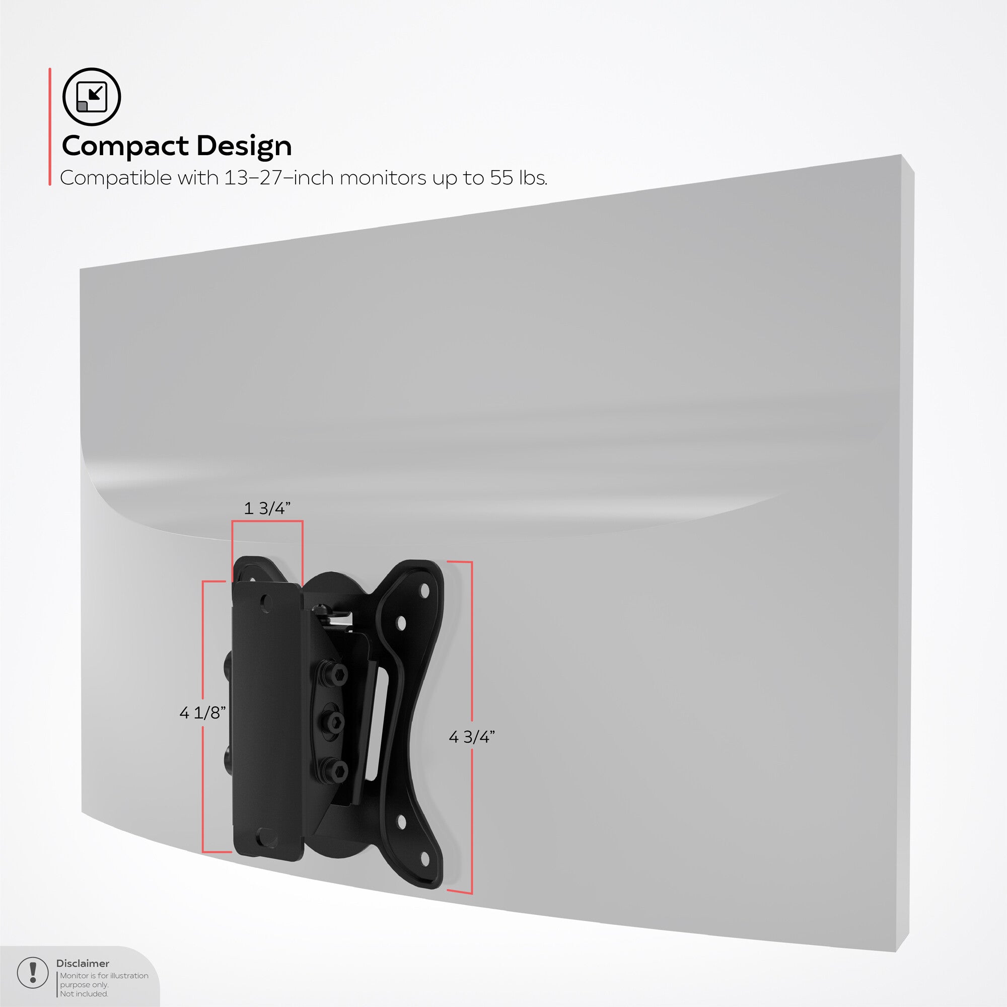 - Minimum VESA mount: 75 x 75 mm Maximum VESA mount: 100 x 100 mm