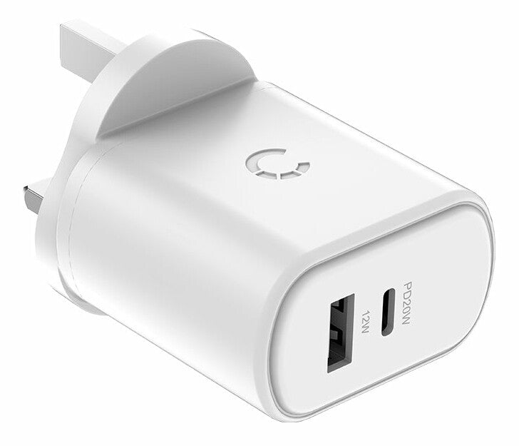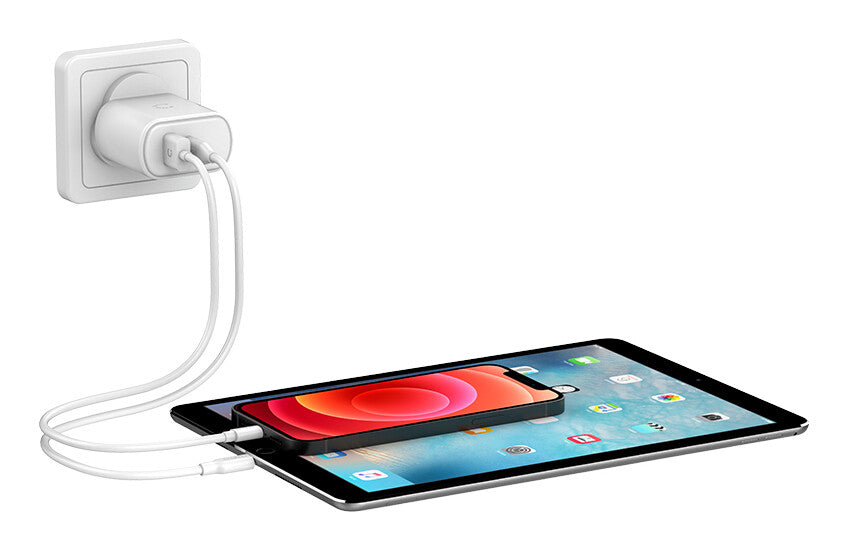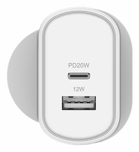 Our PowerPlus 32W Dual USB PD Call Charger is everything you need to give your iPhone 12 series device the fastest charge it can handle. With dual ports you can charge your iPhone & iPad at the same time. The USB-C port utilises our fast charging technology, which when coupled with a USB-C cable, can take your phone from 0-50% battery life in just 30 mins.