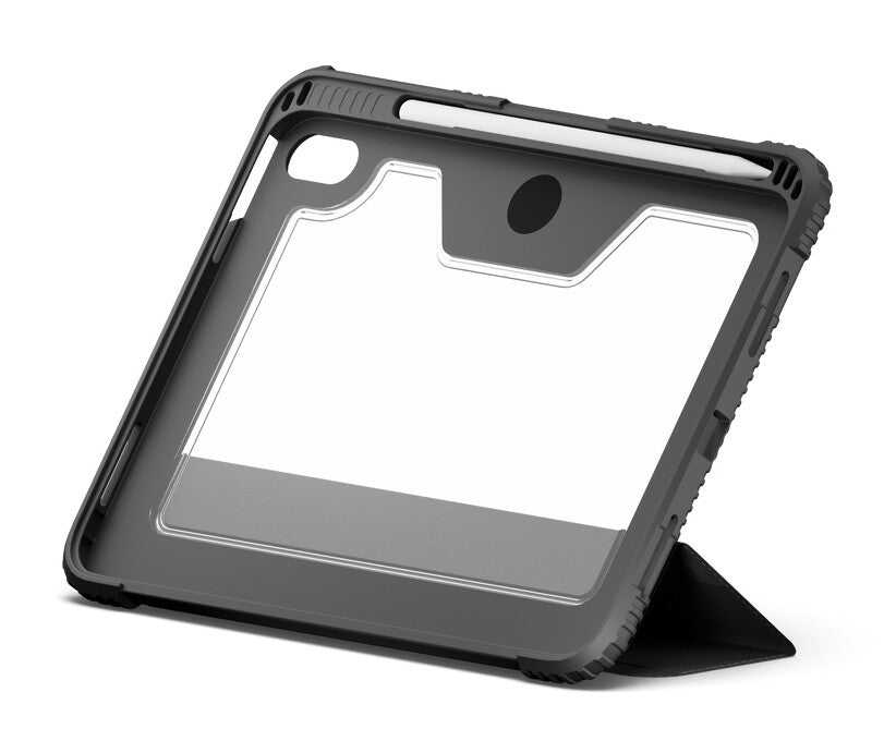 Shock absorbent comers provide superior protection and enhanced durability. Built-in stand enables hands-free viewing in multiple angles. Custom, safe storage for Apple Pencil.