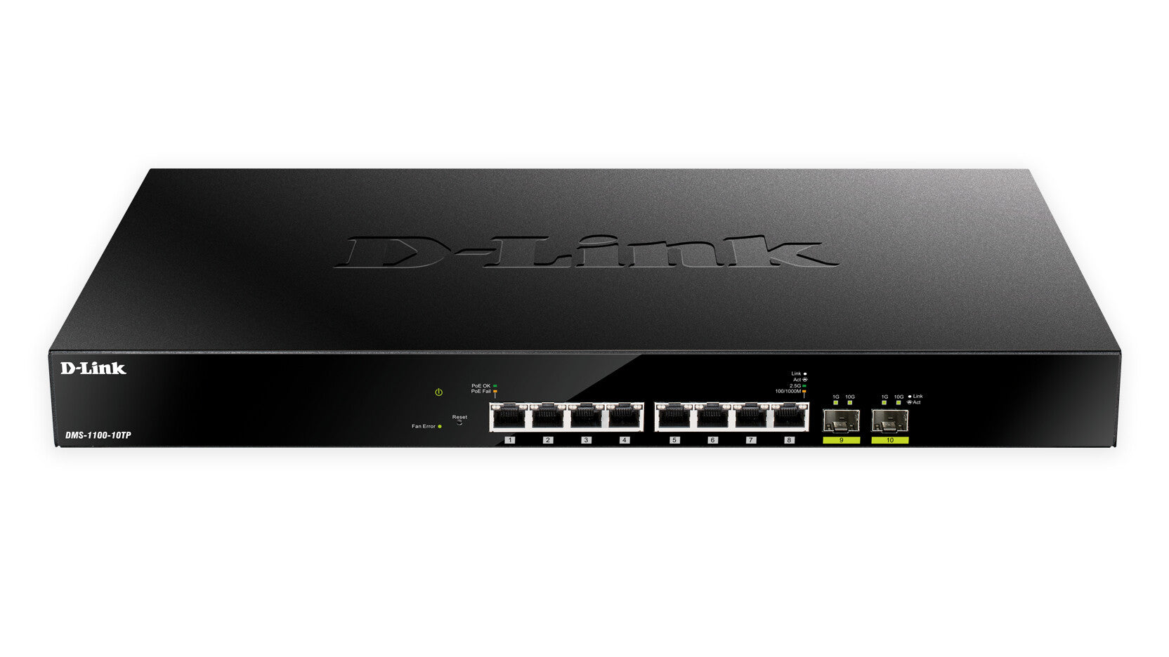 The D-Link DMS-1100 Series 2.5 Gigabit Ethernet Smart Managed Switches are a cost-effective 2.5 Gigabit switch series capable of servicing a range of network needs in any type of business. Featuring eight 2.5 Gigabit access ports and two 10 Gigabit SFP+ uplink ports, these switches are ideal for deploying high-performance 802.11ac Wave 2 access points using 2.5 Gigabit connections, while providing 10 Gigabit wire-speed uplinks for optimal bandwidth when accessing the larger local area network.