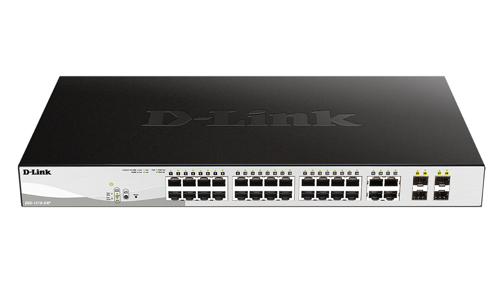 The DGS-1210 Series Smart Switches includes a range of affordable PoE-enable switches for businesses looking to power VoIP phones, wireless access points or network cameras. The DGS-1210-08P1 is a 8-port Smart PoE Switch that provides 8 PoE-enabled ports that can supply power of up to 15.4 W each. Whereas the DGS-1210-24P1 is a 24-port Smart PoE Switch that provides 12 PoE-enabled ports that can support up to 30 W of power output following IEEE 802.3at standard. The design allows more flexibility in power allocation for a variety of powered devices with affordable installation costs.