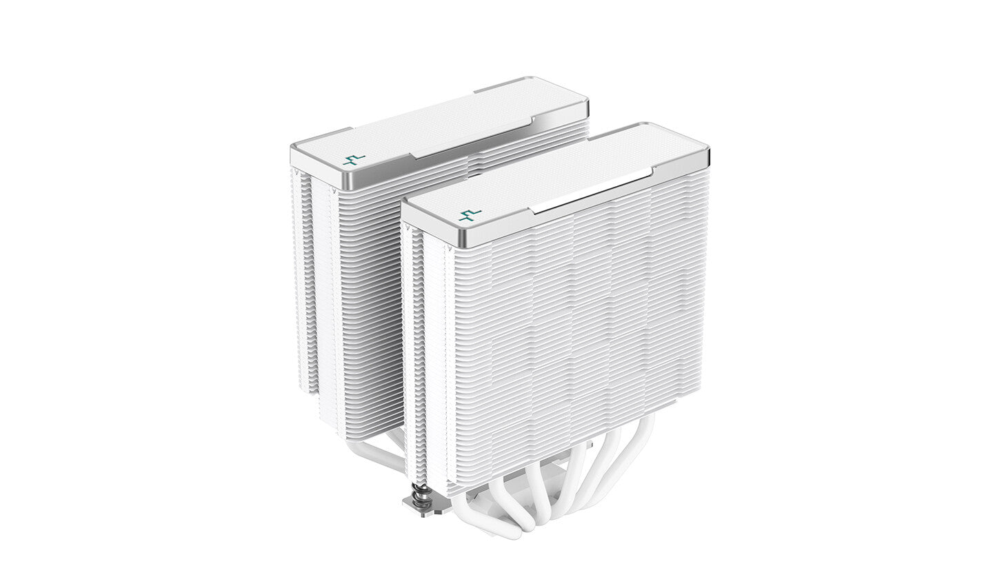 Achieve dominant cooling and silent efficiency with the DeepCool AK620 WH High Performance CPU Cooler equipped with six copper heat pipes stacked with a dense dual-tower fin array and two 120 FDB fans.