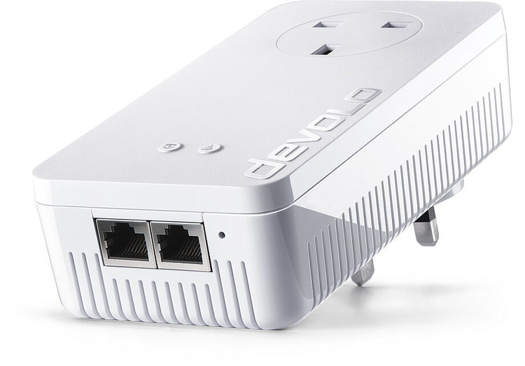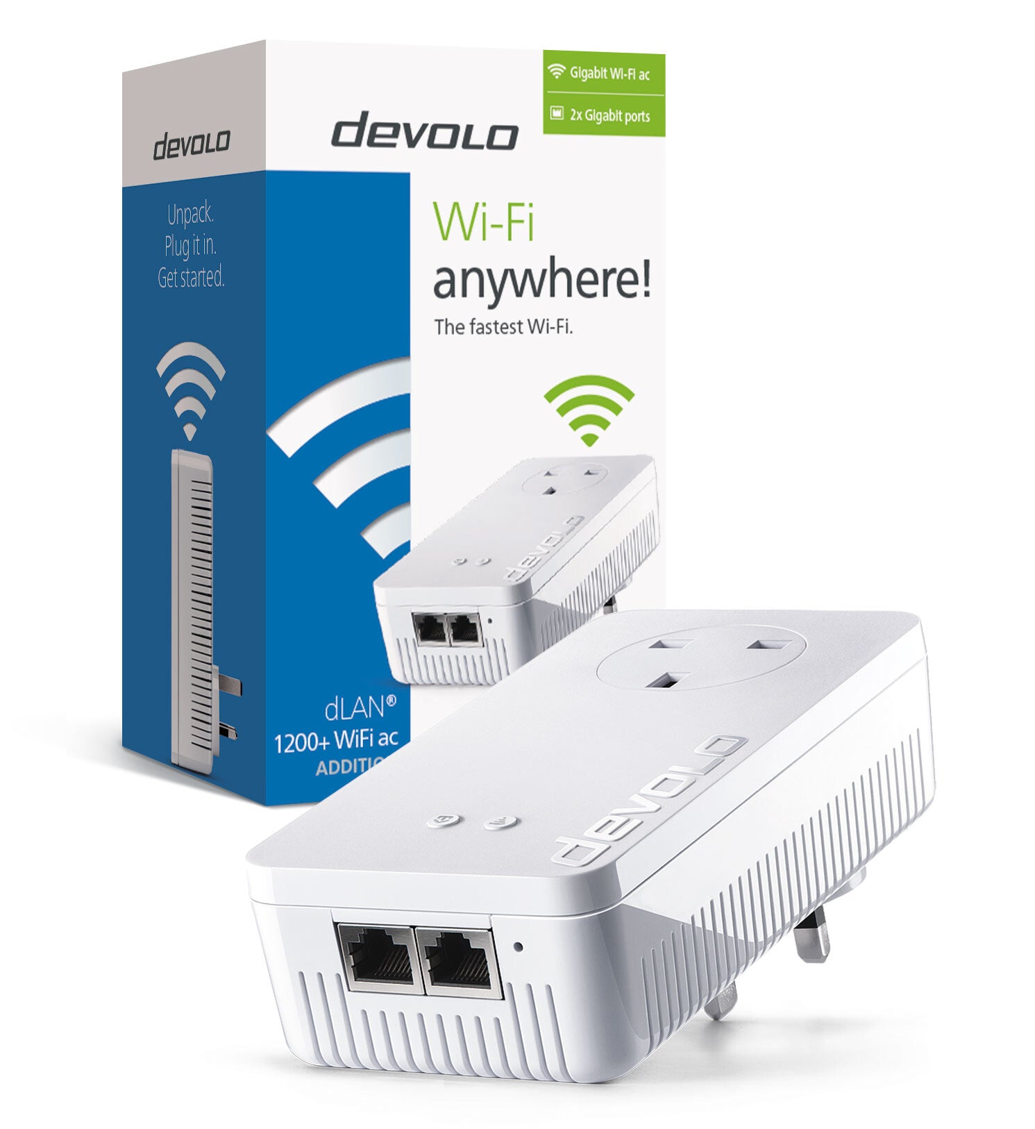 The dLAN® 1200+ WiFi ac from devolo. This is the latest Powerline gigabit generation. Integrated with WiFi ac for the first time—the most innovative WiFi standard with the best performance. Now mobile devices such as smartphones, tablets and laptops can take advantage of the full bandwidth of an Internet connection. Two Gigabit LAN ports are available for additional terminal devices. The integrated electrical socket with child-safety features and included mains filter ensures that no power socket is lost. Both data transmission over electrical wiring (at speeds up to 1.2 Gbps thanks to MIMO technology) and wireless communication using WiFi ac (simultaneously at 2.4 and 5 GHz) meet the latest state-of-the-art standards. dLAN® 1200+ WiFi ac—WiFi anywhere. Faster and easier than ever before.